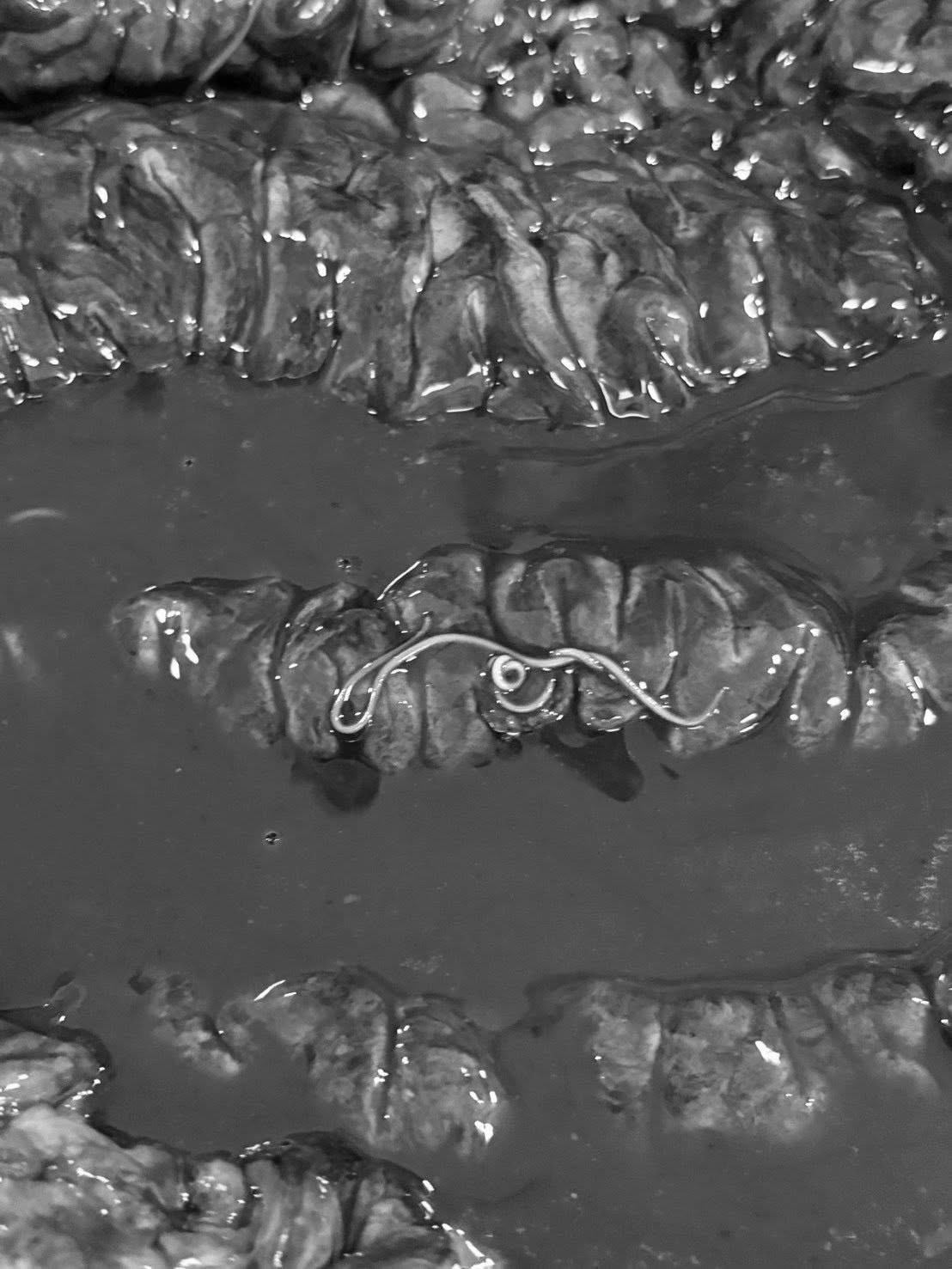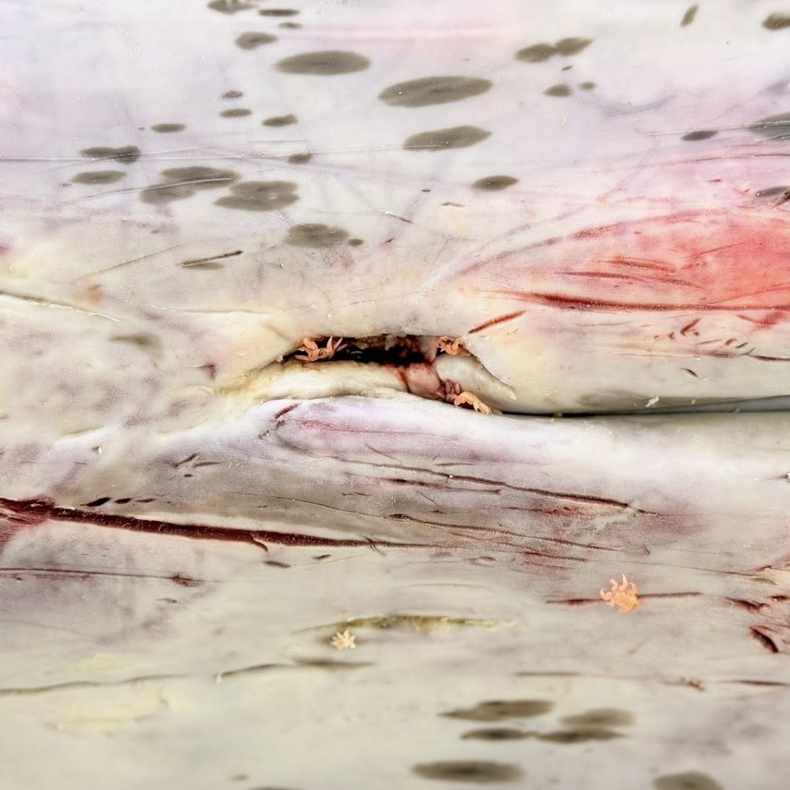 - ภายในแผลพบ เหาวาฬ (whale lice) จำนวนมาก