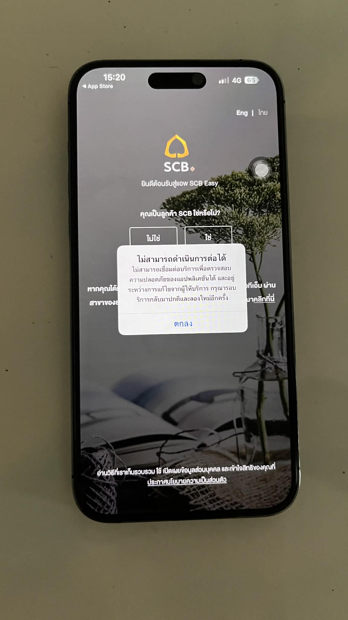 เพราะอะไรทำไมเพราะอะไรทำไมเข้าแอปธนาคารไม่ได้มีใครรู้ไหม ไอโฟน 14promax ไปเปิดแอปที่ธนาคารแต่เข้าไม่ได้ขึ้นแบบนี้ตลอดลบโ