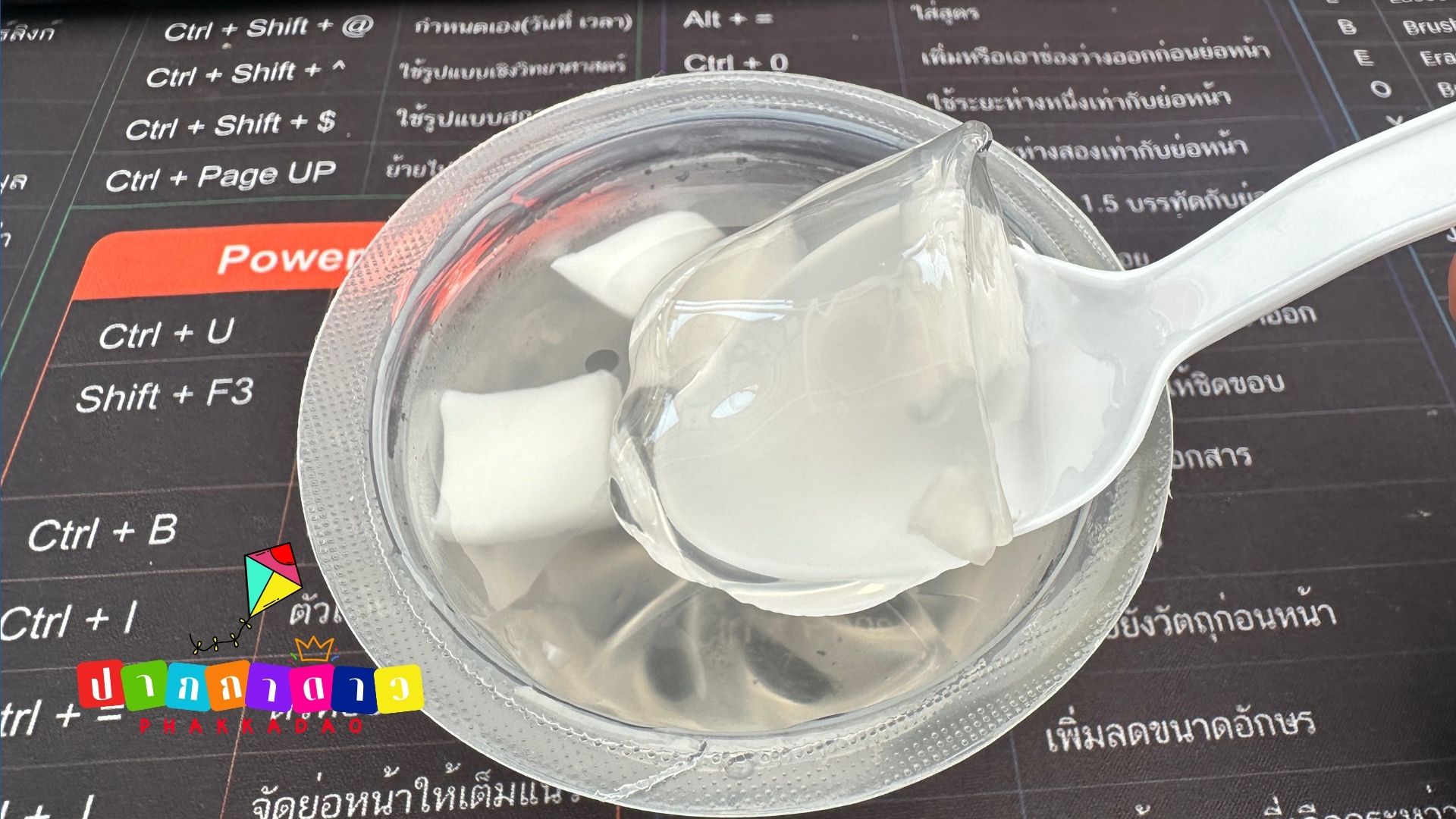 เยลลี่ใสๆ ที่เด้งเล็กน้อยเนื้อไม่แข็ง ไม่เหนียว เป็นสัมผัสแบบนุ่ม ลื่น กินง่ายมาก เนื้อมะพร้าวด้านในหั่นมาเป็นชิ้นเล็กๆเคี้ยวแล้วให้สัมผัสกรุบเบาๆ ตัดกับเยลลี่ได้ดี รสชาติรวมของถ้วยนี้คือ