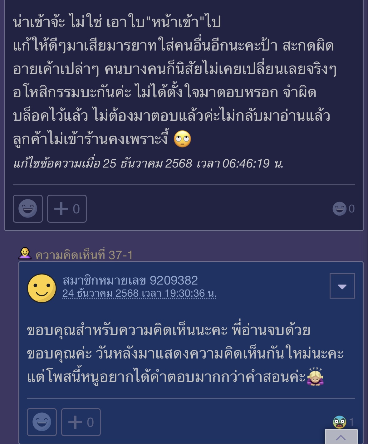 ถึงทีมงานพันทิป : รบกวนตรวจสอบสมาชิกหมายเลข 1417780