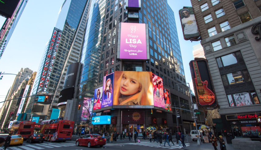 ลิซ่า เป็นที่รักของแฟน ๆ ทั่วโลก ถึงขนาดทุ่มทุนเช่าบิลบอร์ดราคาแพงใจกลางไทม์สแควร์ และป้ายโฆษณาฉายภาพเคลื่อนไหวบนห้าง Coex Mall ในมหานครนิวยอร์ก ประเทศสหรัฐอเมริกา เพื่ออวยพรวันคล้ายวันเกิดตอนที่เธอ อายุครบ 21 ปี ทำให้ลิซ่ากลายเป็นศิลปินหญิงสัญชาติไทยคนแรกที่ได้ขึ้นบิลบอร์ดในย่านดัง