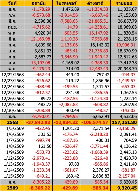 Sinthorn Summary 15/1/2569 : ต่างชาติซื้อสุทธิ 2,636.83 ลบ.