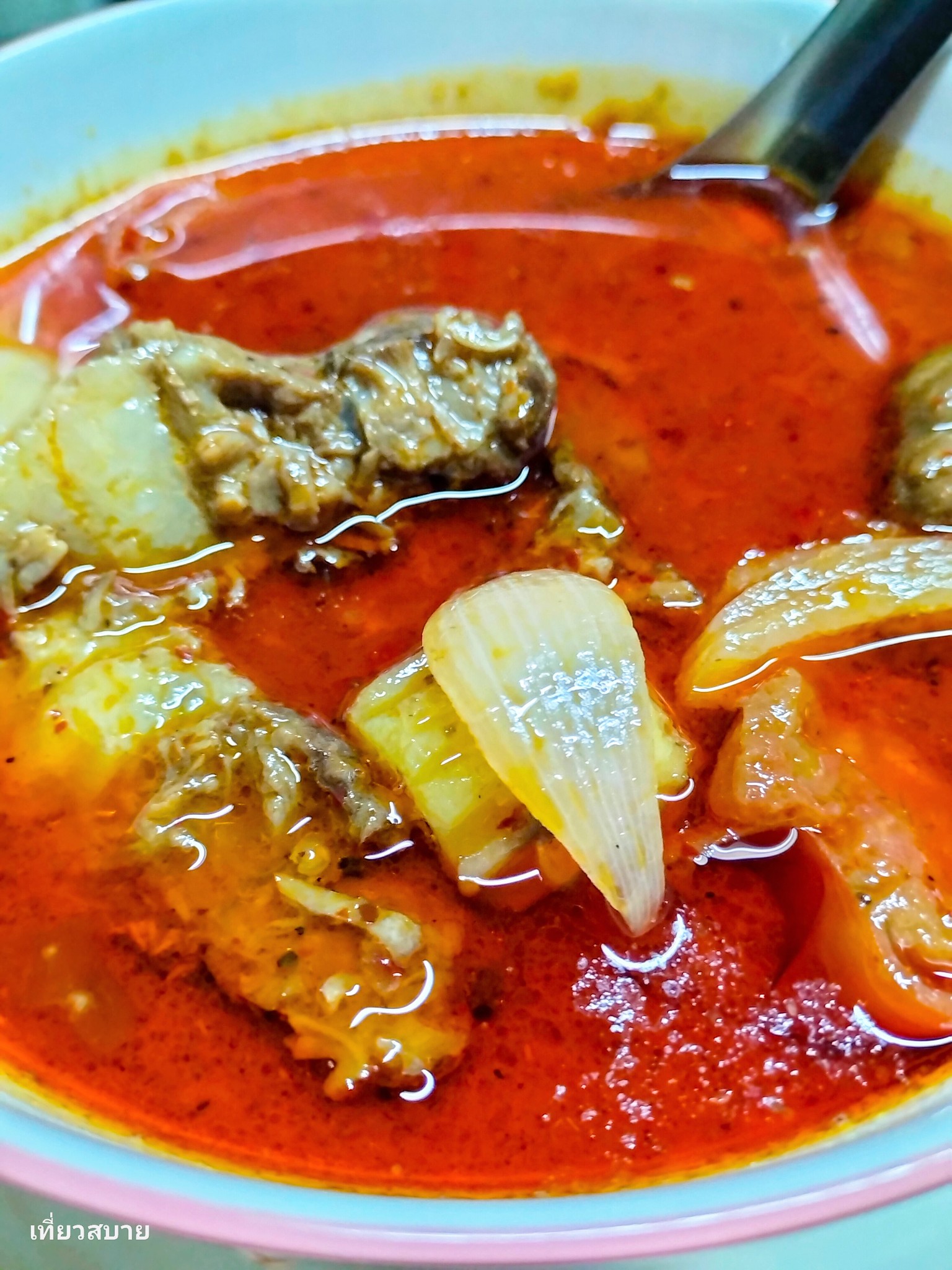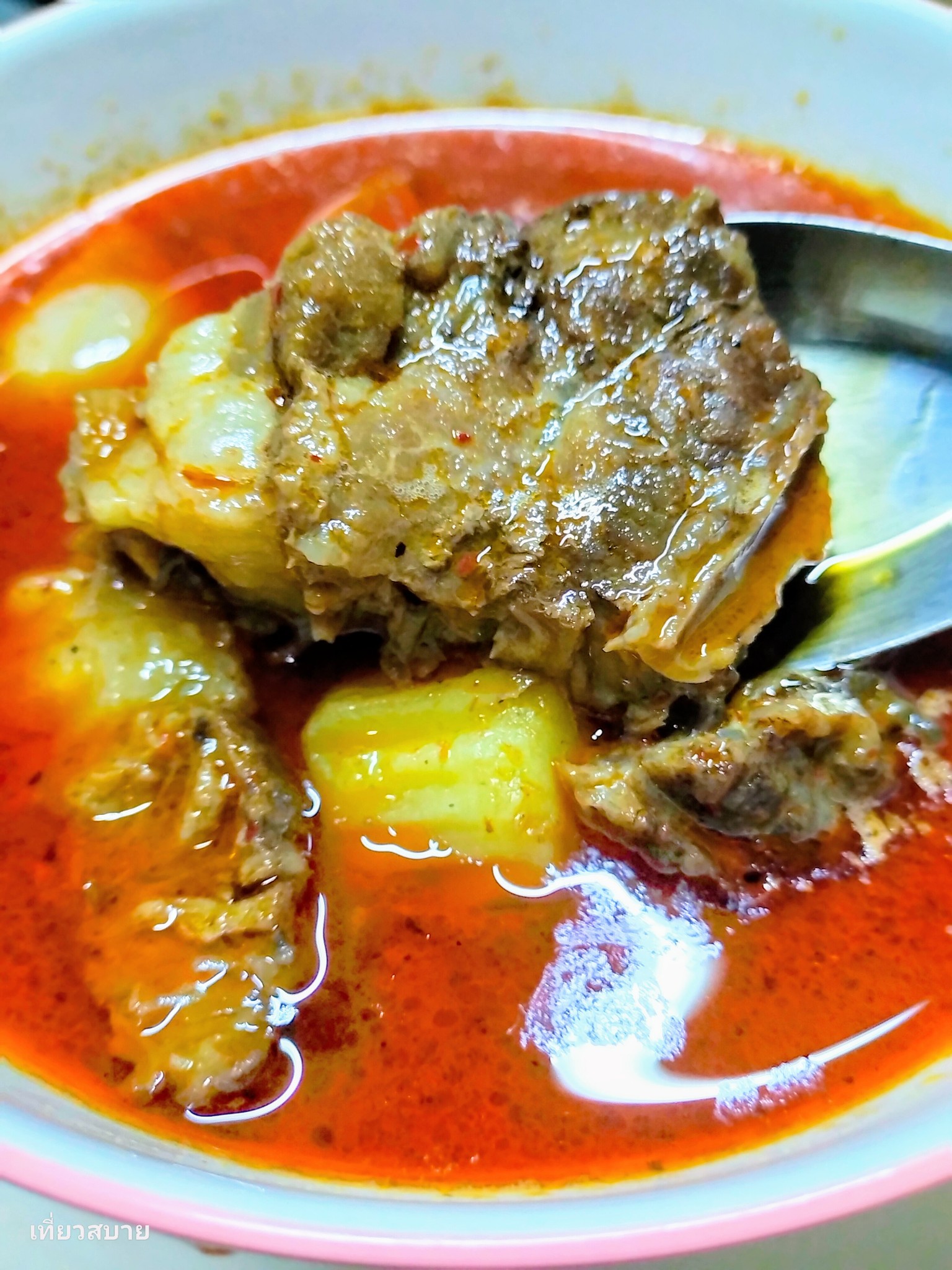 ✨เมนูสุดท้าย มัสมั่นเนื้อ อันนี้สั่งใส่ถุงกลับบ้าน เป็นมัสมั่นเนื้อที่ไม่คุ้นเคย โดยเฉพาะกลิ่นหอมของเครื่องเทศ เป็นกลิ่นหอมที่แปลกมาก น้ำแกงสีเข้มข้น เนื้อเปื่อยแทบละลายในปาก กินกับข้าวสวยร้อนๆ คือนิพพาน!