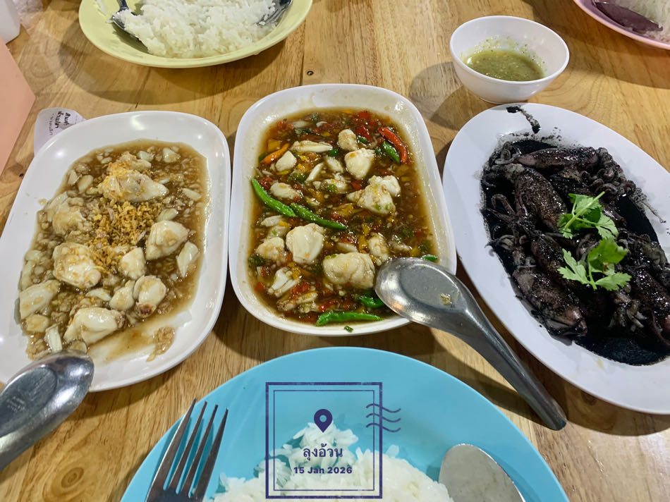 [TripNote] ลุงเล่า Ep.404: หมึกผัดน้ำดำ, ปูก้อนผัดกระเทียม, ปูก้อนผัดพริกสด, แกงป่าปลาเห็ดโคน