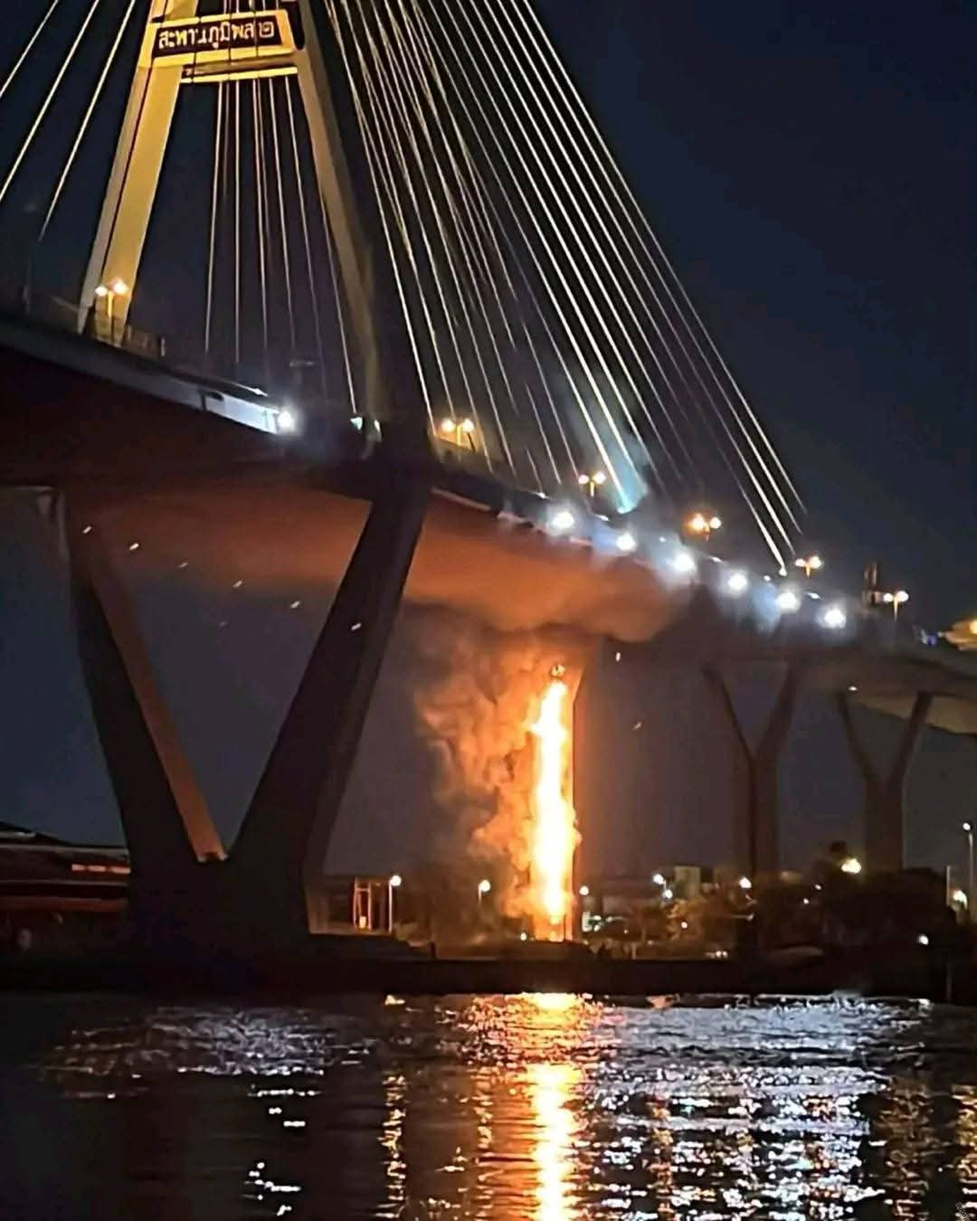 ตอนแรก ข่าวบอกแค่ ไฟไหม้ เสาท่อน้ำทิ้ง สะพานภูมิพล ไฟเป็นแท่งเลยแนวตั้ง- แต่ตอนนี้น่าจะ ไม่ใช่แค่ไหม่ชั่วคราวละ โทษใคร