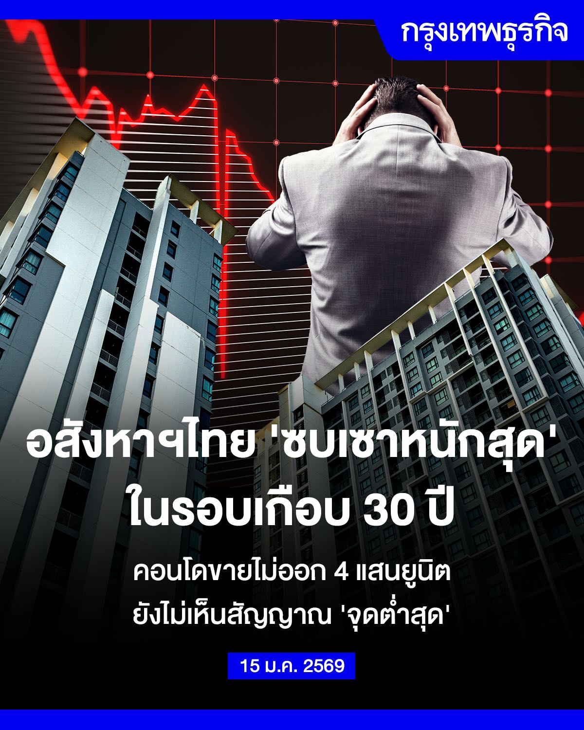 อสังหาฯไทย ‘ซบเซาหนักสุด’ ในรอบเกือบ 30 ปี คอนโดขายไม่ออก 4 แสนยูนิต ยังไม่เห็นสัญญาณ ‘จุดต่ำสุด’