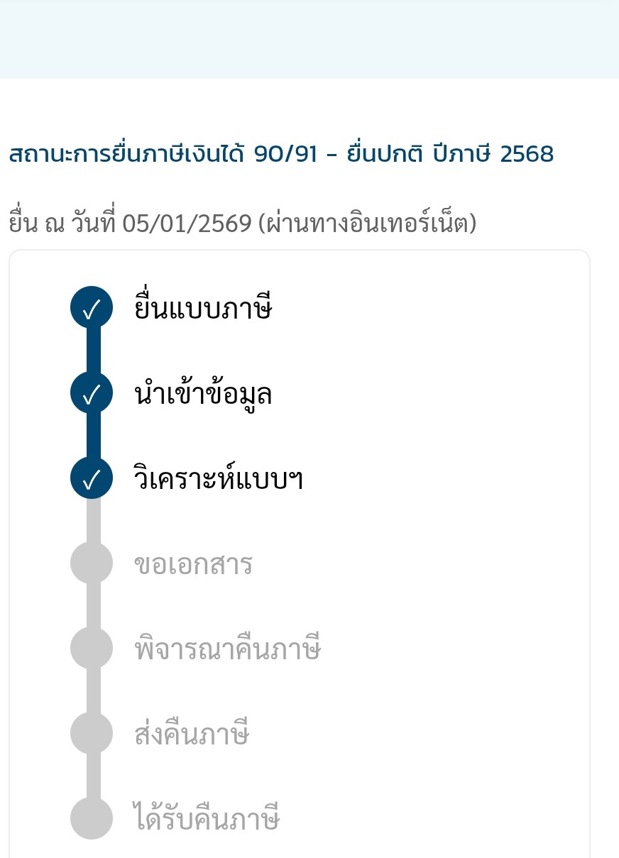 วันนี้ได้มีการเข้าไปเช็คในระบบเรื่องยื่นภาษีว่าไปถึงขั้นตอนไหนแล้ว?? เพราะยื่นไปตั้งแต่ 6 มกราคม สรุปยังอยู่ขั้นตอนการวิเคราะห์แบบเดิมมาประมานอาทิตย์กว่าแล้ว ซึ่งเพื่อนได้ยื่นที่หลังเรา ตอนนี้ได้ร