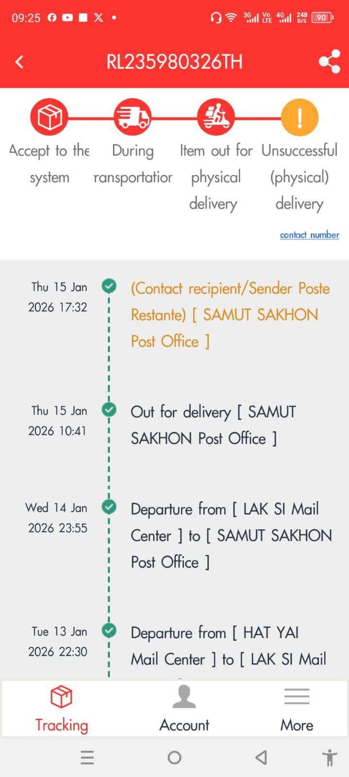 ส่งไปแบบ surface mail ค่ะ แต่เช็คจากการ tracking แล้ว ของถูกส่งไปที่ ที่ทำการไปรษณีย์ 62920 และมีผู้รับแล้ว แต่ไม่ใช่เพื่อนเป็นคนรับ ไม่ทราบจะติดตามยังไงได้บ้างไหมคะ ?