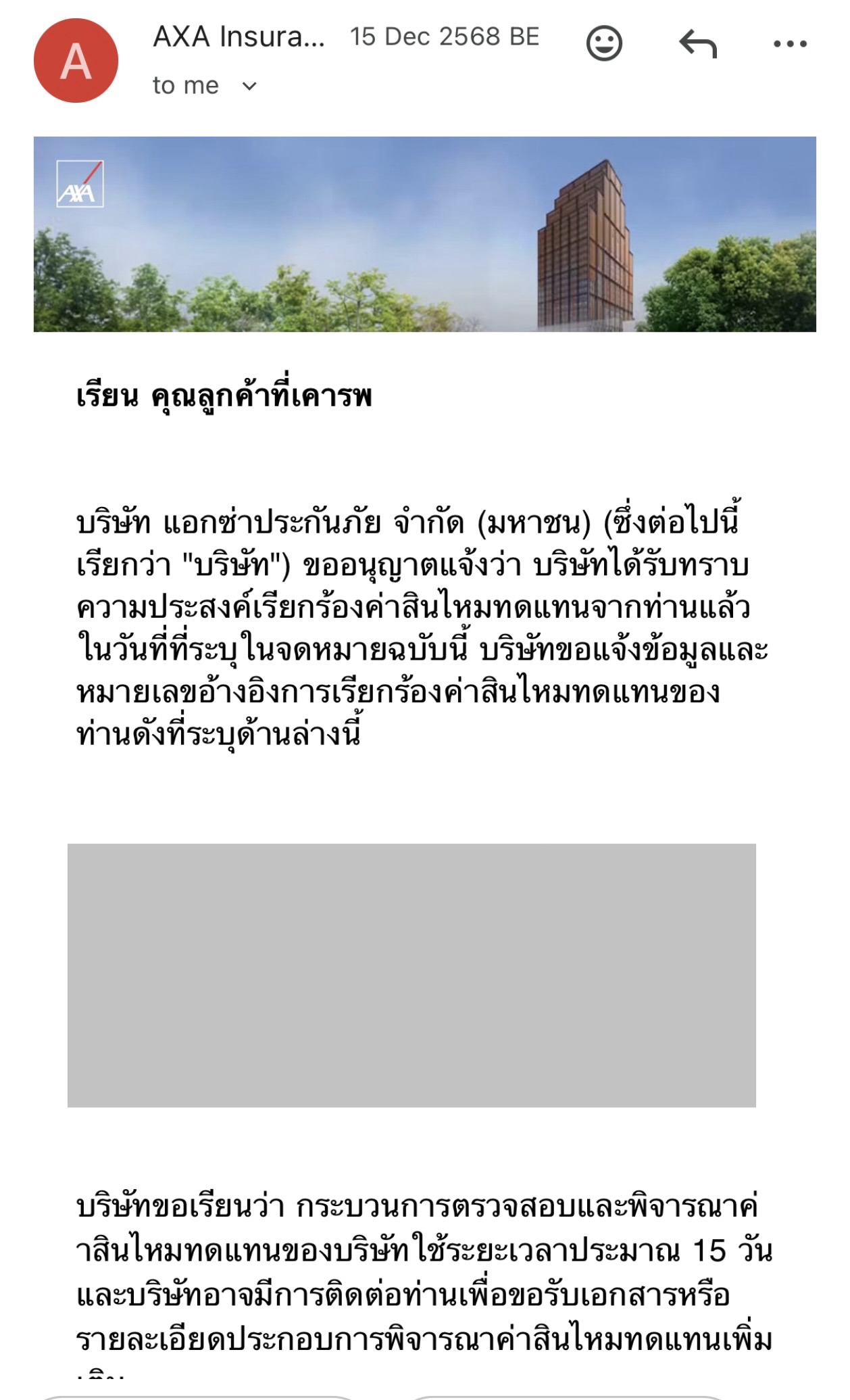 อยากทราบว่า จริงๆ แล้ว การพิจารณาค่าสินไหมทดแทนของ Krungthai AXA คือกี่วันคะ