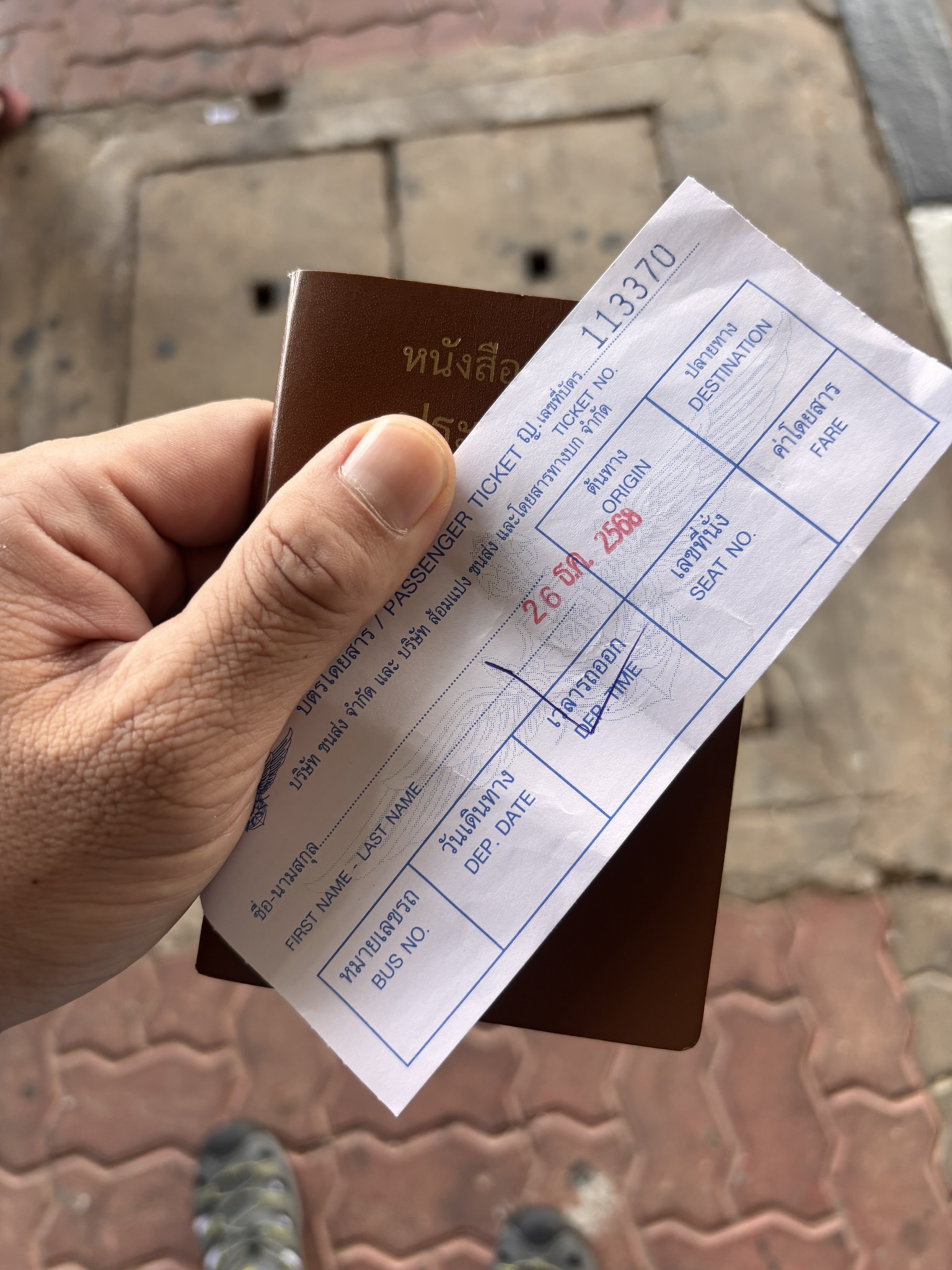 ออกเดินทางโดยรถบัสของบริษัทเพชรประเสริฐทัวร์จากสถานีขนส่งเชียงใหม่(อาเขต3)
