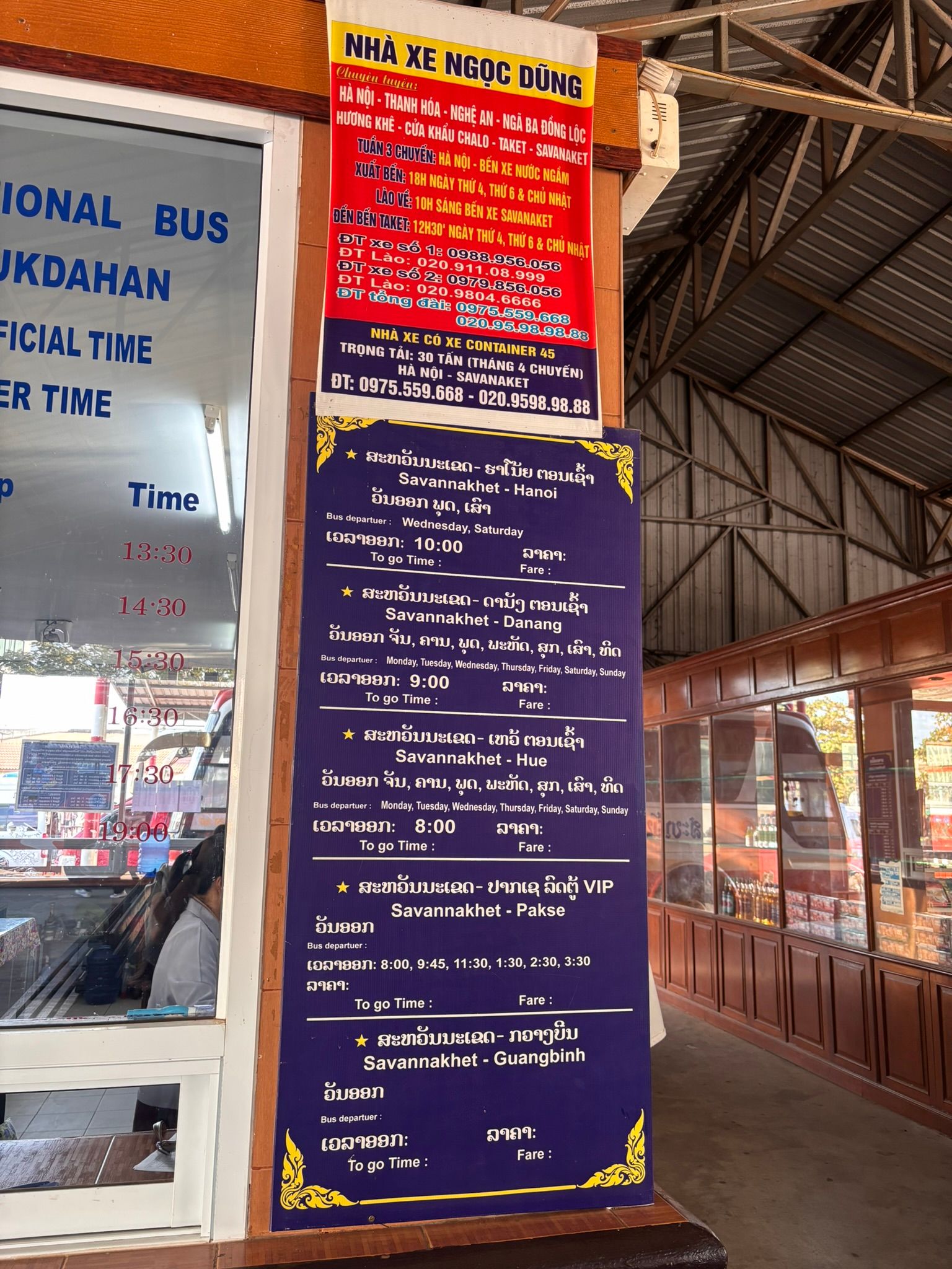 17.30o. ถึงสถานีขนส่งผู้โดยสารสะหวันนะเขตจะมีจุดขายตั่วอยู่ที่เดียวตรงนี้สอบถามกับเจ้าหน้าที่ได้เลย