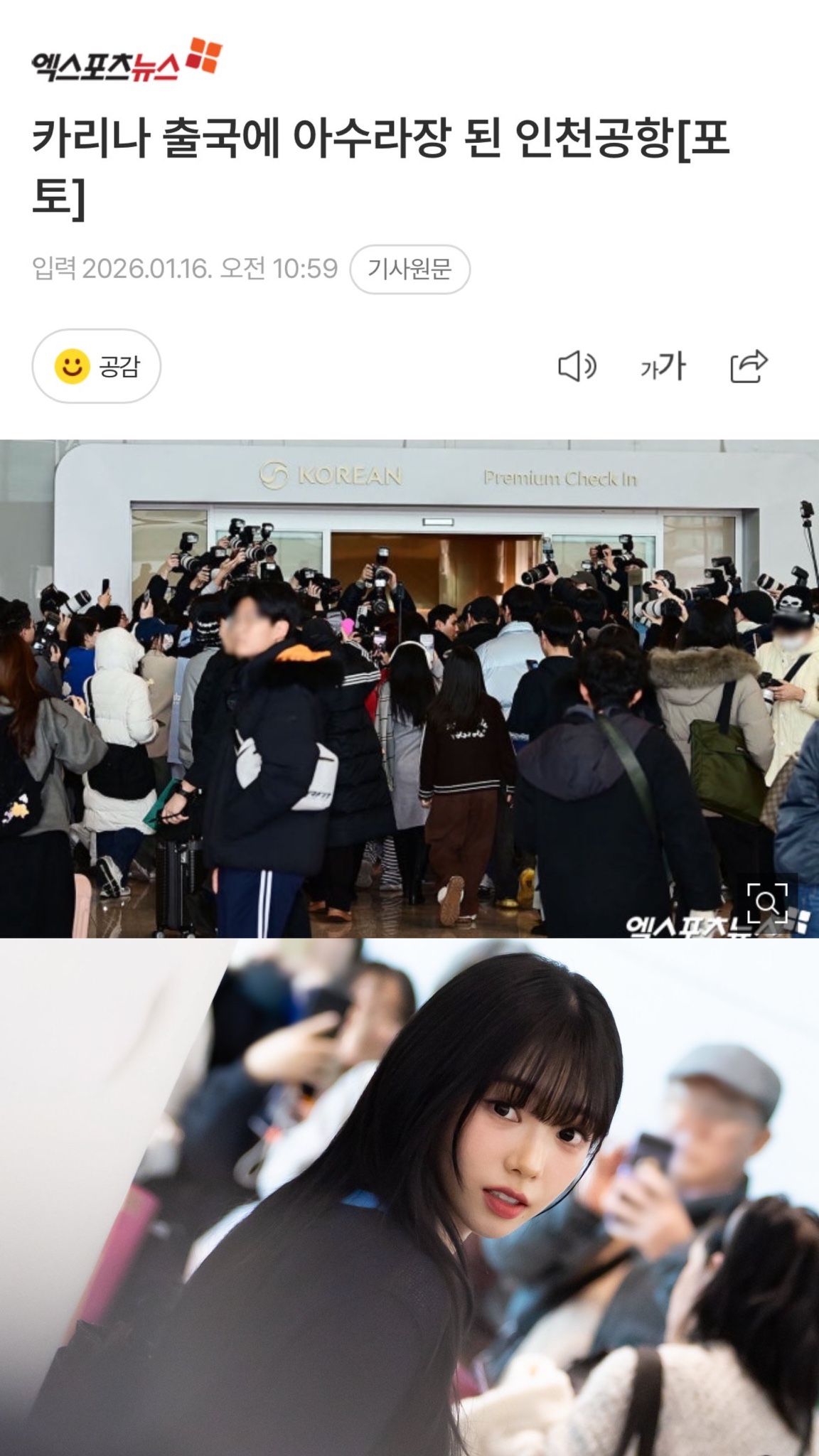 สำนักข่าวรายงานความวุ่นวายที่เกิดขึ้น ขณะที่คาริน่าปรากฎตัวในสนามบินอินชอน