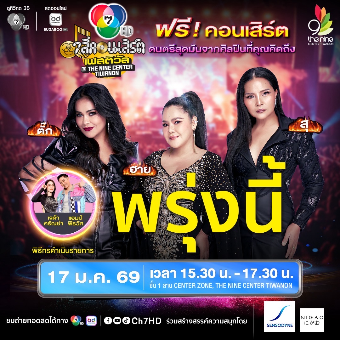 🔥 พบกับ 3 แม่เป้ง เขย่งสุดตัว ตั๊ก ศิริพร, ฮาย อาภาพร, สุ สุนารี และนักแสดงหนุ่มหล่อ บิว ณัฐพล จัดเต็มทุกจังหวะความสนุก ในงาน 7 สีคอนเสิร์ต เฟสติวัล @THE NINE CENTER TIWANON