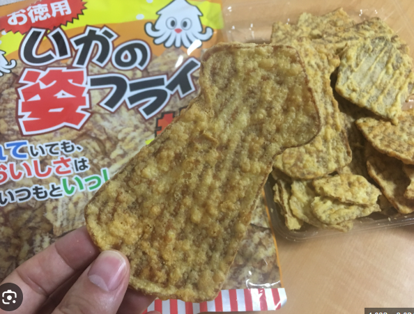 เพื่อนบอกขนมมันรูปทรงเป็นรูปปลาหมึกเลย ซองใหญ่ประมาณเบนโตะ ในซองมีชิ้นเดียว