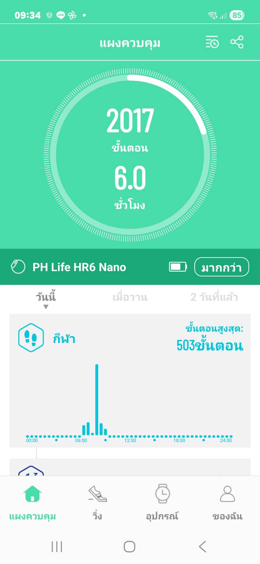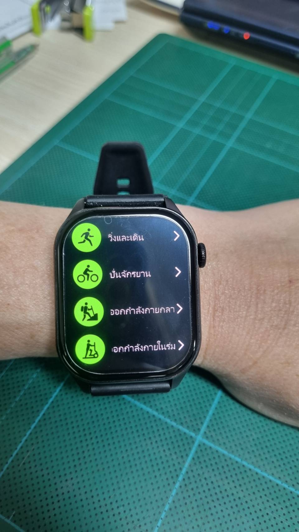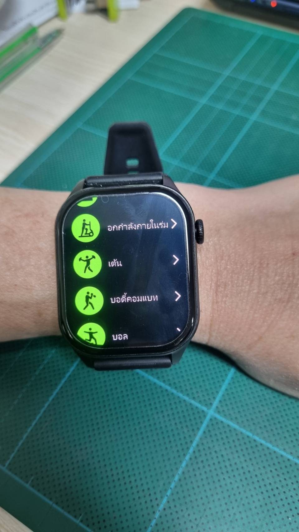 ในโหมดของการออกกำลังกาย มีมากกว่า 100 ชนิดกีฬา ไม่ต้องพกมือถือไปก็ออกกำลังได้ แล้วค่อยมาดูรายละเอียดในแอปได้ มีโหมดนับก้าวการเดิน นับแคลให้ด้วยนะ