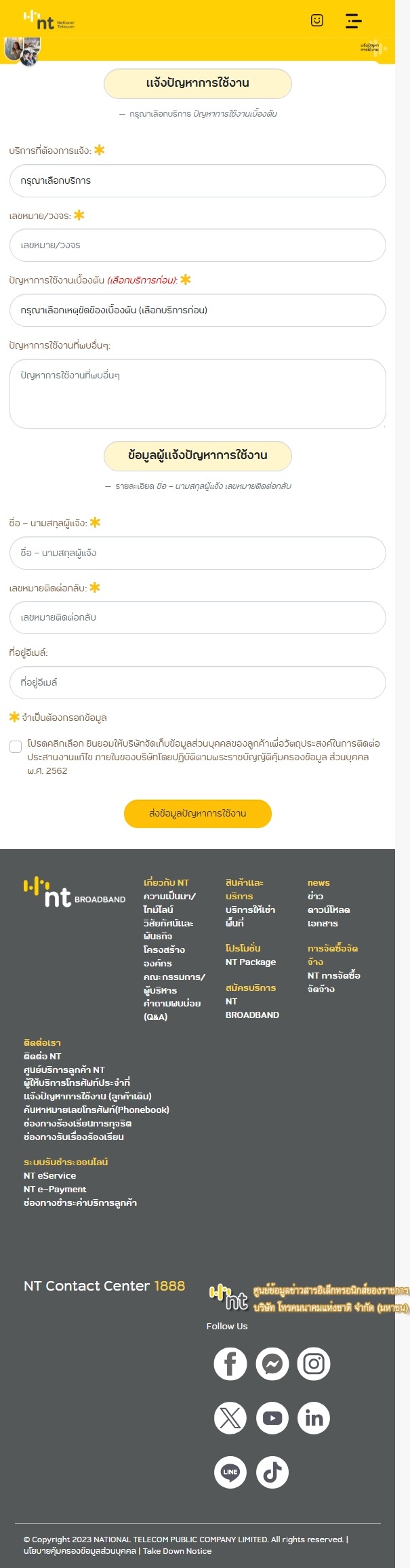 https://nt1888.ntplc.co.th/ ส่งเรื่องไปแล้วไม่เข้าระบบ ก็ปิดไปเถอะครับ