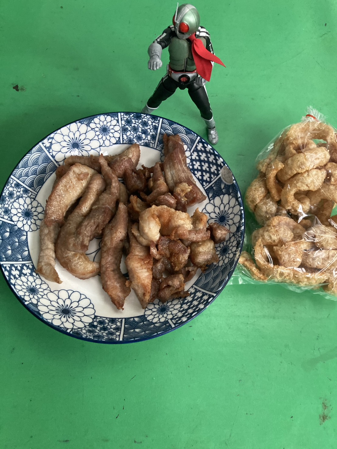 ล้างทำความสะอาดผ่าหลังแล้ว เอามาล้างด้วยนำโซดา เพื่อล้างคาวกุ้ง และก็ให้กุ้งกรอบๆ ซื้อแคบหมูมาด้วย 30 บาท