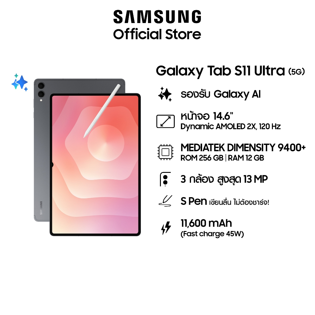 💻📱 Galaxy Tab S11 Ultra 5G จอ 14.6" 120Hz แรงลื่น ทำงานจริงจัง ✍️⚡