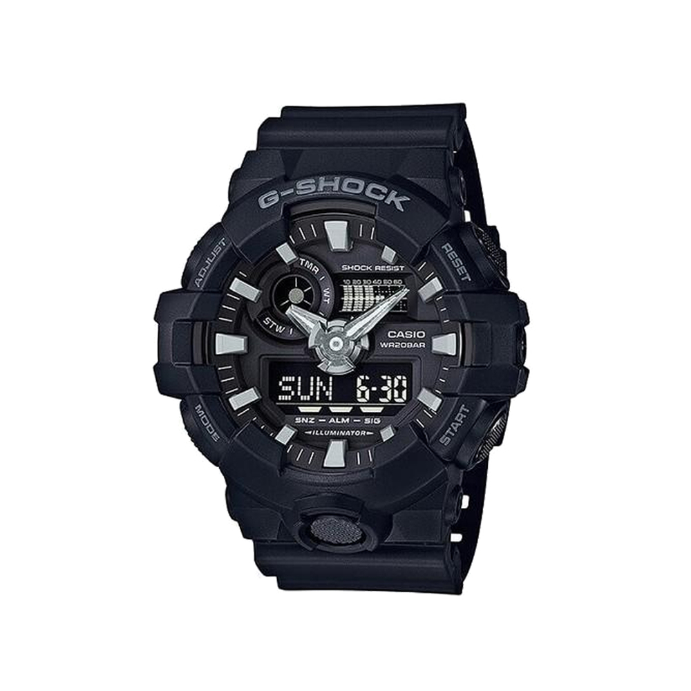 นาฬิกา G-SHOCK GA-700-1BDR เหมาะมากสำหรับคนที่อยากได้นาฬิกาสายลุย ใส่ได้ทุกวันทั้งทำงานและออกกำลังกาย จุดเด่นคือหน้าปัดอะนาล็อก-ดิจิทัล เข็มใหญ่ชัด อ่านเวลาง่าย พร้อมไฟ LED สีขาวช่วยให้มองเห็นชัดตอนกลางคืน ตัวเรือนขนาด 57.5 × 53.4 × 18.4 mm น้ำหนัก 69 g ใส่แล้วดูเท่แบบสปอร์ต