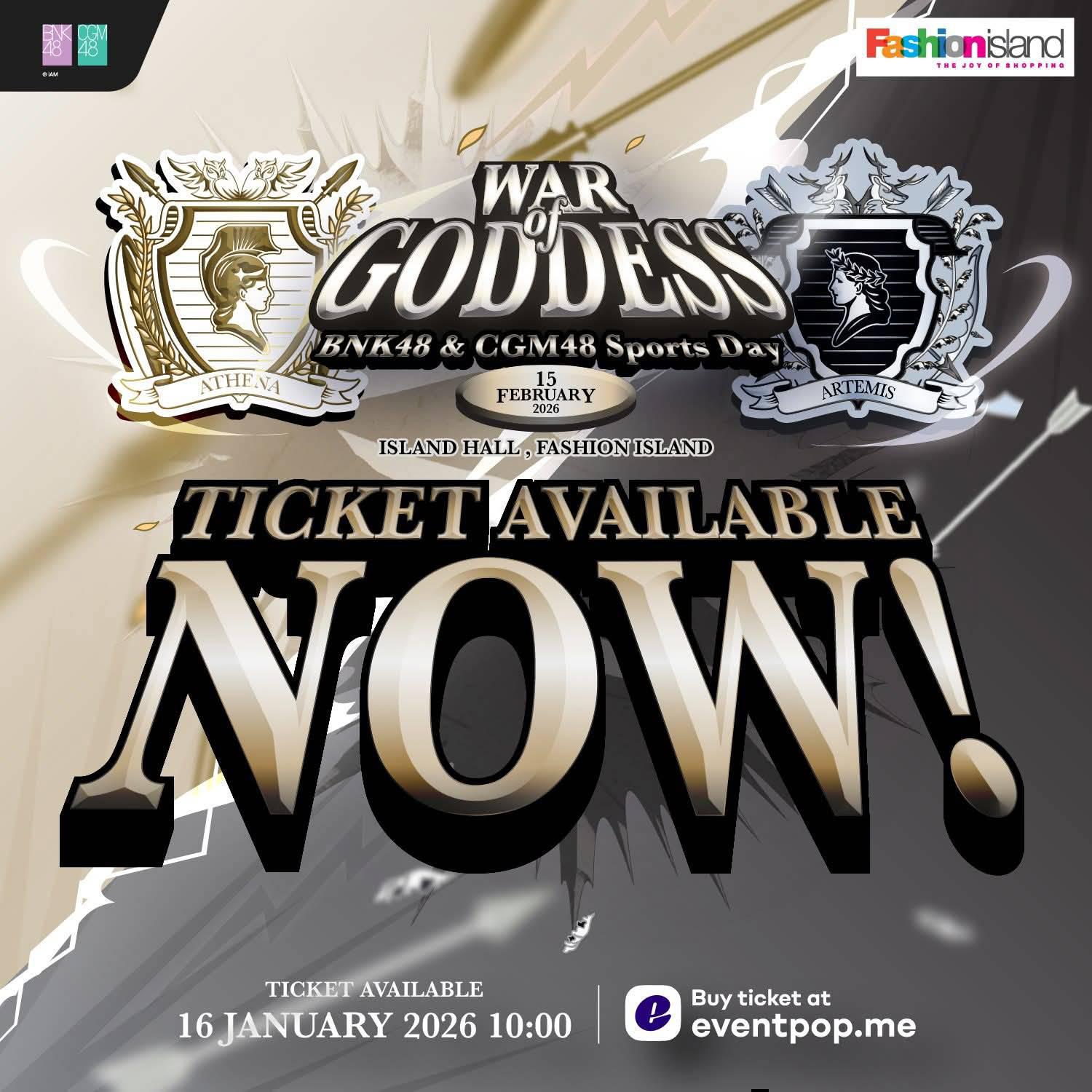 ขอเชิญทุกคนมาร่วมเป็นสักขีพยานศึกระหว่าง เทพี Artemis VS เทพี Athena ในงานกีฬาสี BNK48 & CGM48 Sports Day 2026: War of Goddess ศึกครั้งนี้จะดุเดือดขนาดไหนมาร่วมเป็นกำลังใจให้กับสาว ๆ BNK48 และ CGM