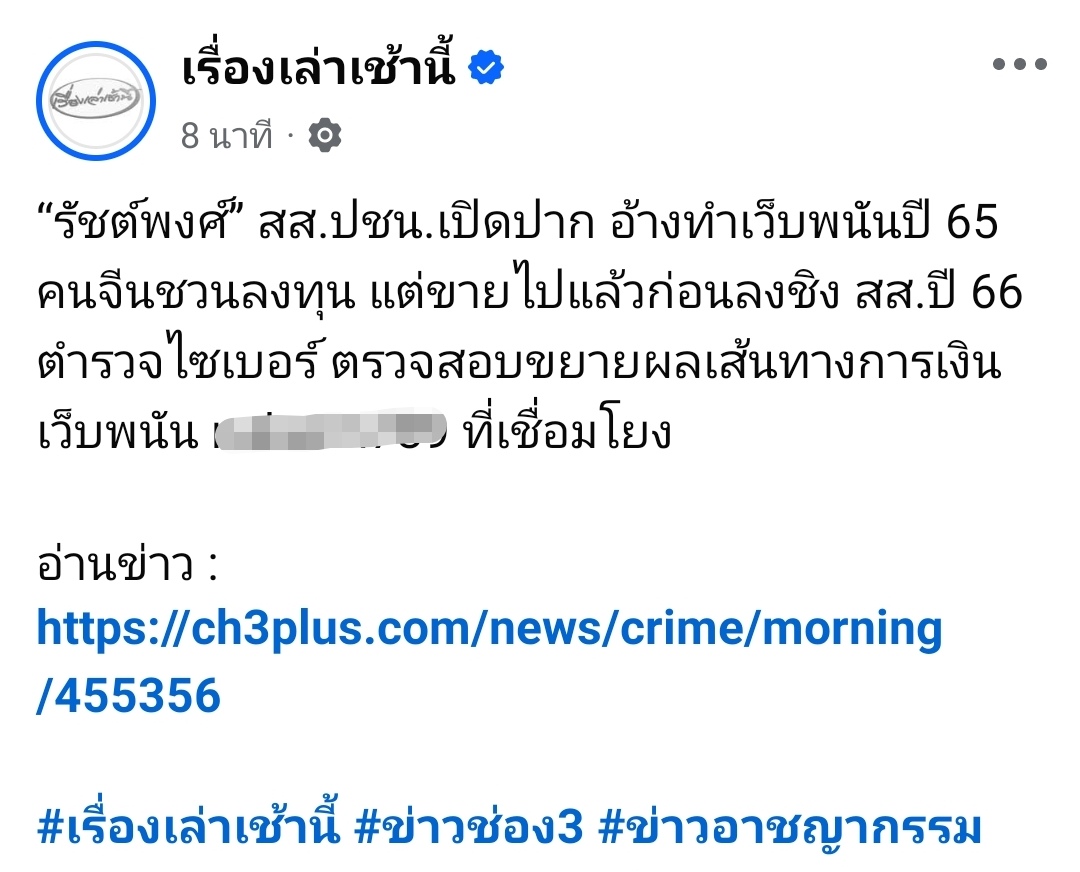 🔊 “รัชต์พงศ์” สส.ปชน.เปิดปาก อ้างทำเว็บพนันปี 65 คนจีนชวนลงทุน แต่ขายไปแล้วก่อนลงชิง สส.ปี 66