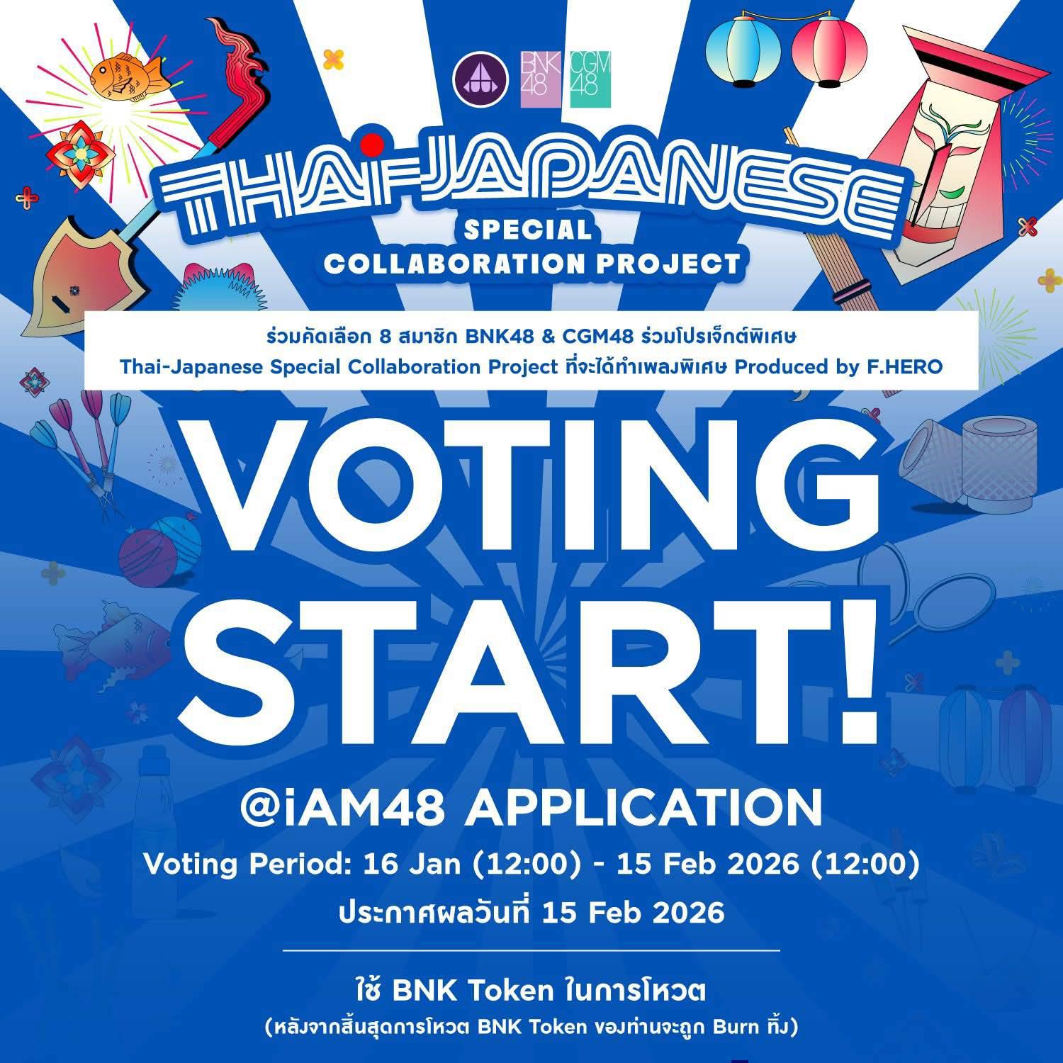 Special Collaboration Project ร่วมคัดเลือก 8 สมาชิก BNK48 & CGM48 ร่วมโปรเจ็กต์พิเศษ Thai-Japanese Special Collaboration Project ที่จะได้ทำเพลงพิเศษ Produced by F.HERO 16 Jan (12:00) - 15 Feb 2026