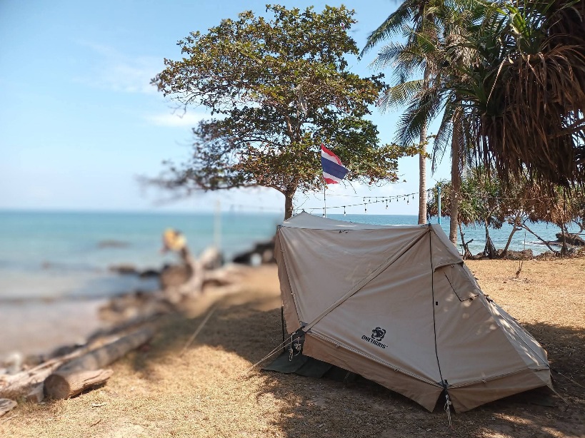 โทรแจ้งเจ้าของลาน ผมทักมาเมื่อวานแล้ว เลือกที่กาง แล้วจ่ายตังค์ แดดกำลังมา (ก่อนมาถึงฟ้าครึ้ม เหมือนฝนจะตก) แต่ตรงที่เลือกจะมีร่มเงา วันนี้ใช้ Bushcraft และประเดิมบ้านใหม่ ที่เพิ่งสอบมา เป็นไซส์เล็กกว่าตัวเก่านิดหน่อย เหมาะกันอนคนเดียวครับ