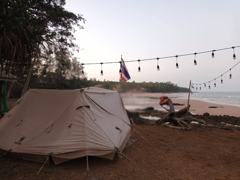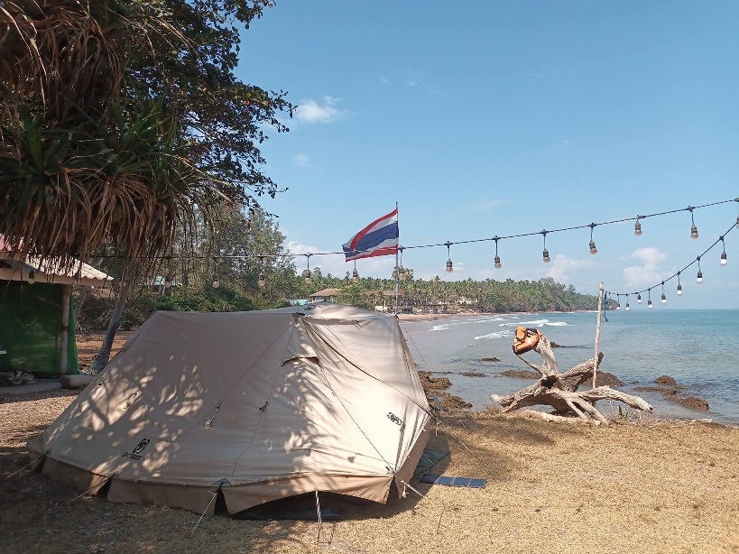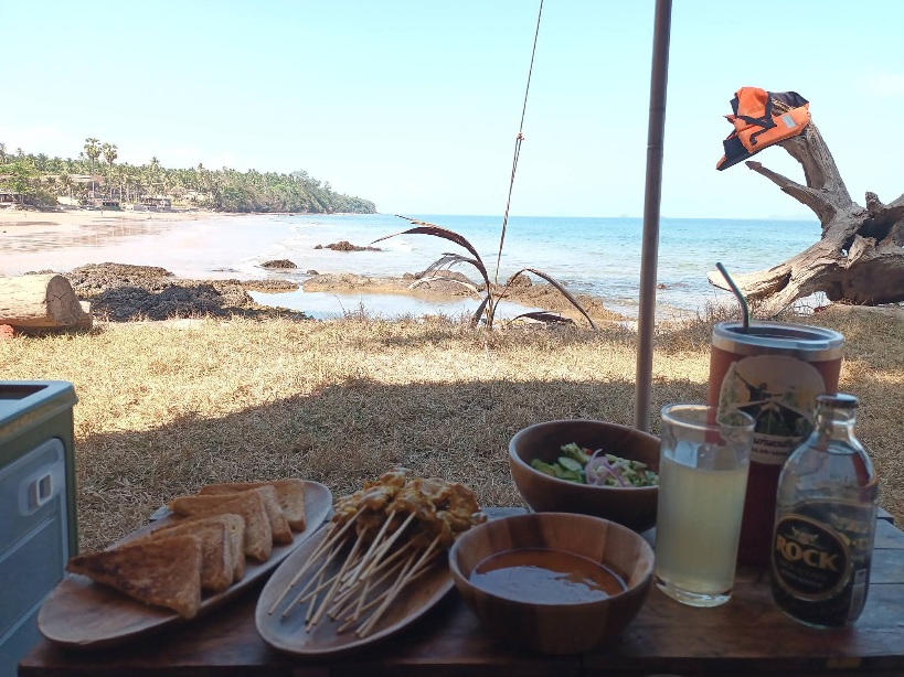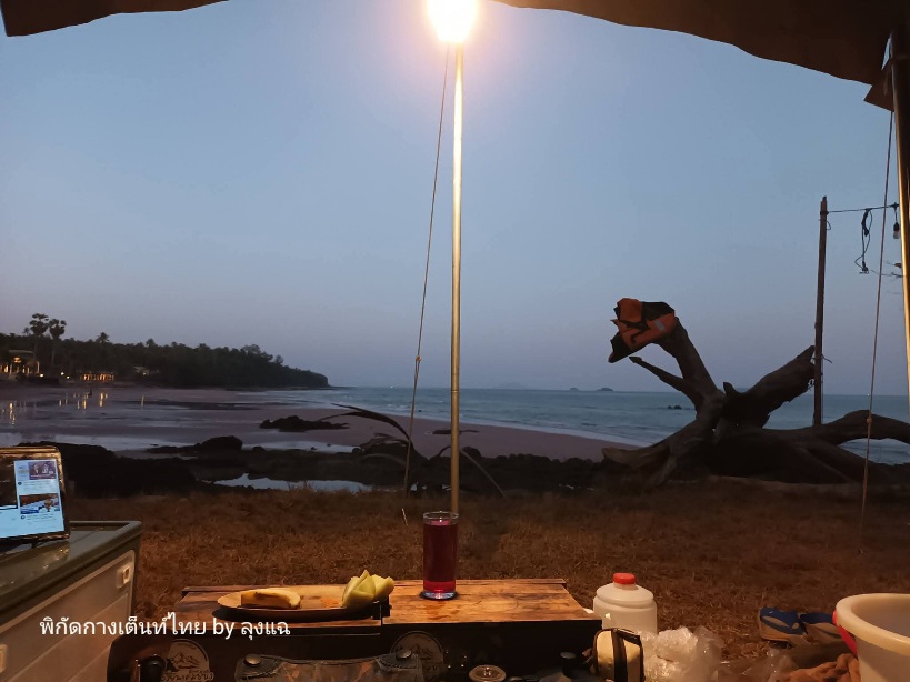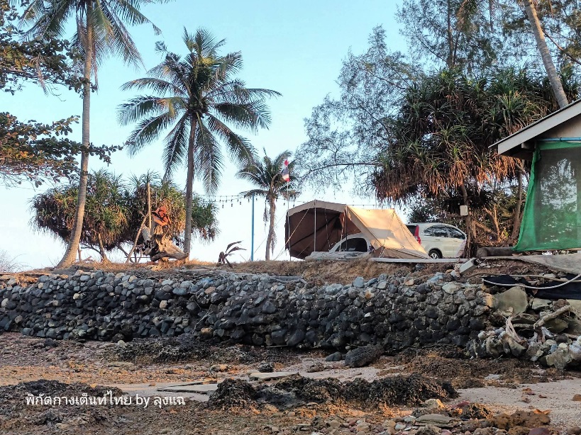 คุณอา อายุ 71 เจ้าของลาน เข้ามาทักทายพูดคุยเป็นระยะ จากที่บุกเบิกที่นี่เป็นคนแรก จากร้านอาหารริมทะเลบรรยากาศดี แต่วันนี้เลิกราไป พร้อมปักหลักพักผ่อนที่นี่ ทิ้งโรงงานแปรรูปผลไม้ให้ลูกๆ ดูแล คุณอาแข็งแรง ไม่มีโรคอะไรเลย