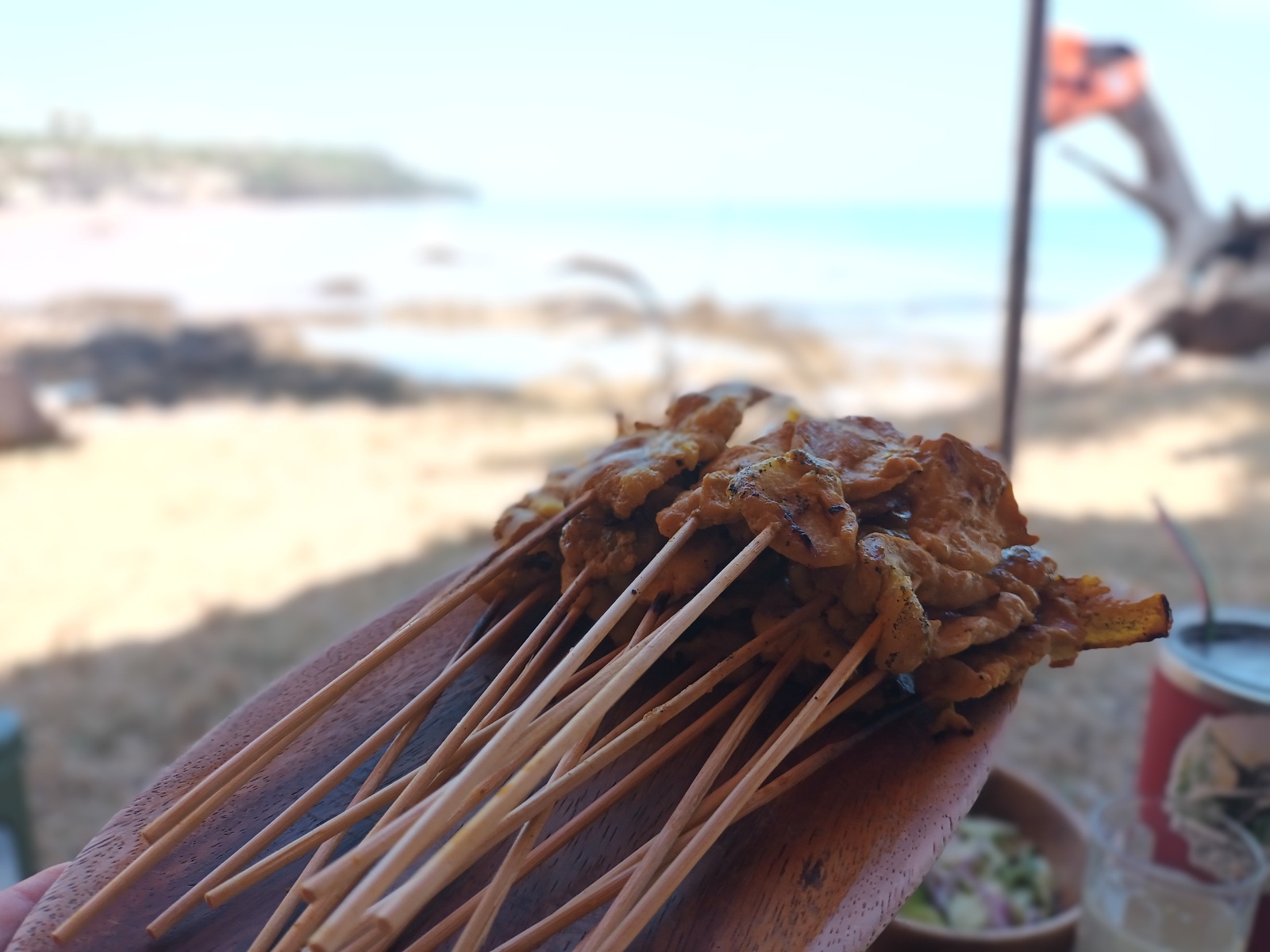 นั่งๆ นอนๆ พักผ่อน ดูบอลเทพกะอัสสัมไปด้วย วิวชายทะเลสวยงาม มีคลื่นลมอยู่บ้าง น้ำทะเลเริ่มค่อยๆ ลดลง อากาศดี ไม่ได้ใช้พัดลมเลย เพราะมีลมทะเล และร่มไม้อยู่