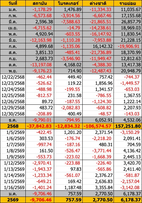 Sinthorn Summary 16/1/2569 : ต่างชาติซื้อสุทธิ 3,355.84 ลบ.