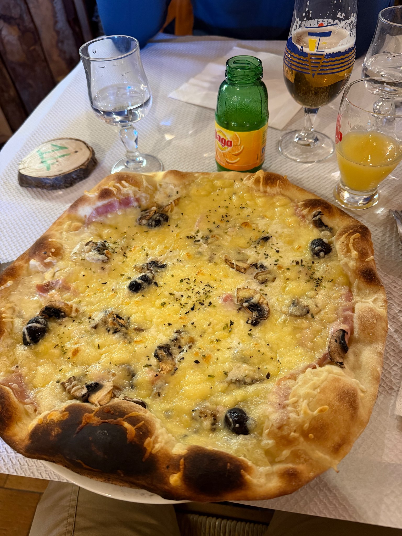 หลังจากนั้นก็ถึงเวลาชาร์จพลังด้วย พิซซ่าถาดใหญ่กินไปได้ไม่ถึงครึ่งก็อิ่มแล้ว แต่เป็นมื้อที่อร่อยมาก เพราะมันคือรางวัลหลังจากใช้พลังทั้งวัน 🍕❄️