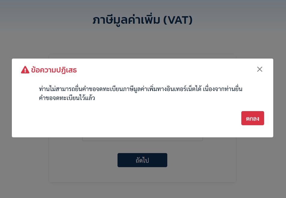 ยื่นจดVATออนไลน์แล้วขึ้นข้อความแบบนี้ ซึ่งก่อนหน้านี้ไม่เคยยื่นเลยครับ