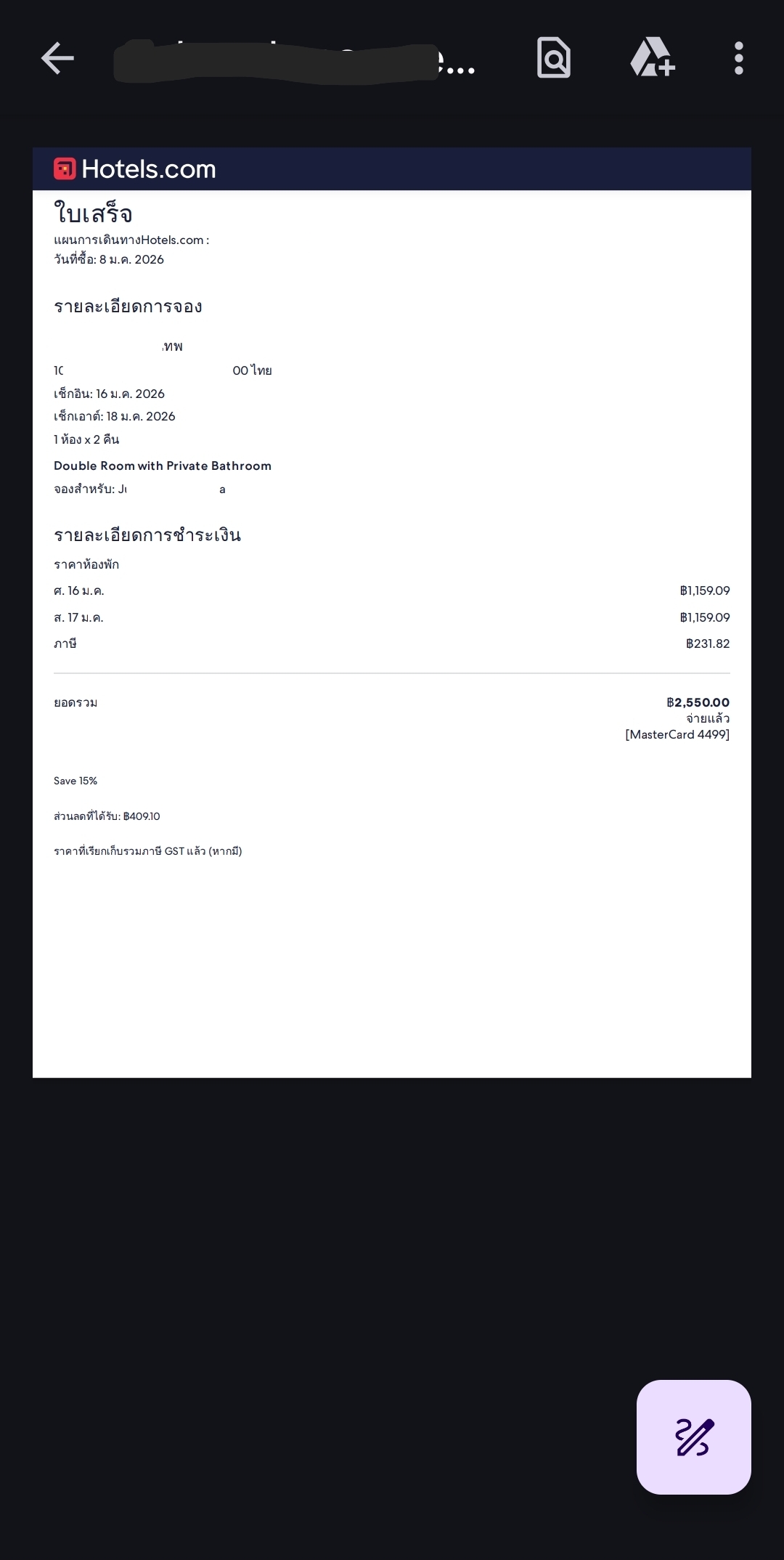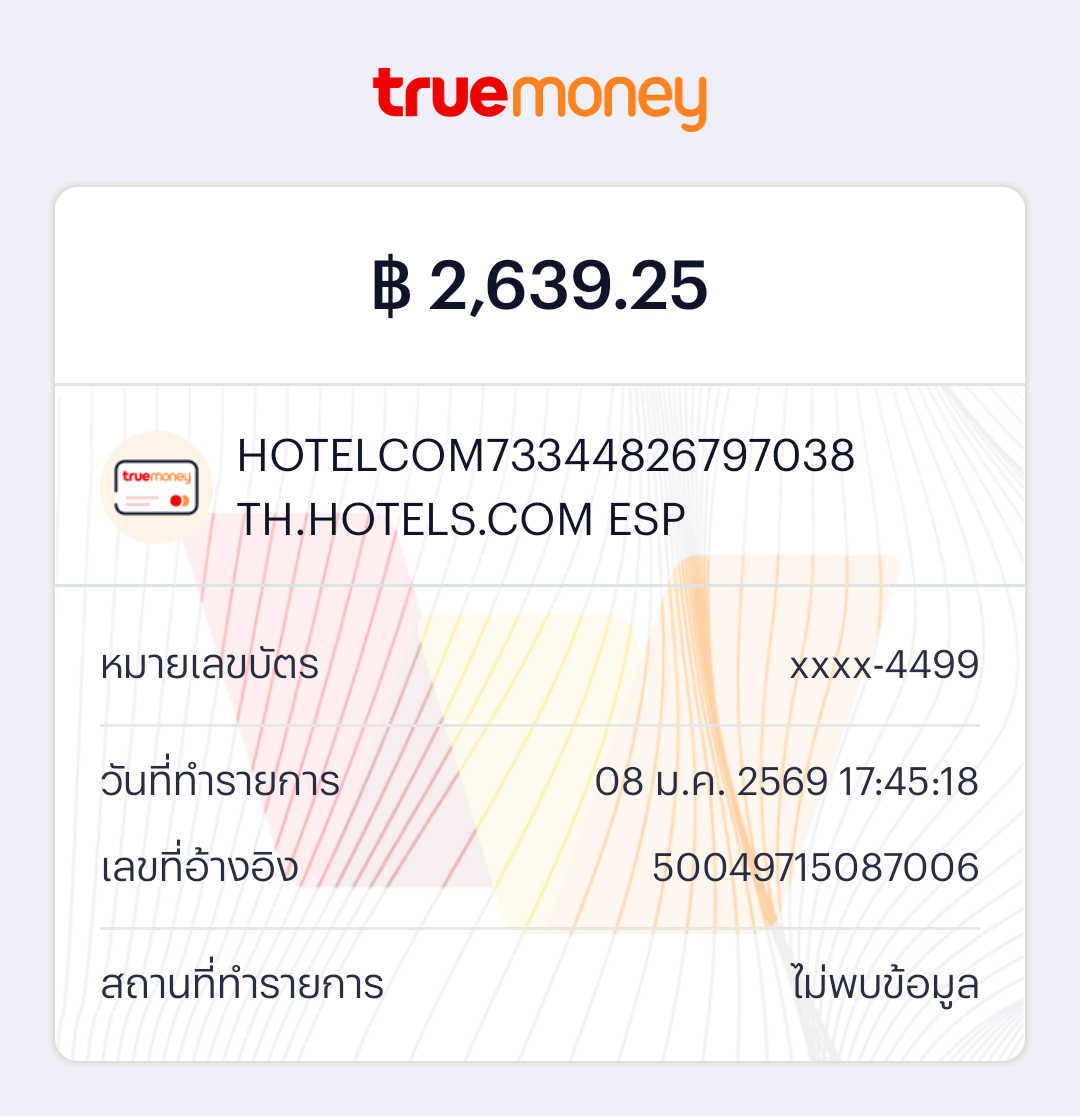อย่างที่เห็นค่ะ ยอดจองโรมแรมไปคือ 2,550 บาท แต่ยอดที่ทรูมันนี่ตัดไปคือ 2,639.25 คือเกินไปประมาณ 89.25 บาท คือพอเป็นแบบนี้แล้วเราต้องติดต่อกับทางไหนแล้วยังไงดีค่ะ คือหาสาเหตุการตัดยอดเกินไม่เจอ เลยไม่รู้ว่า 89.25 บาทนี่ตัดไปไหน เพราะในใบเสร็จก็ราคาตามที่จองแจ้งไว้ แต่ทรูตัดเกิน 😅😅