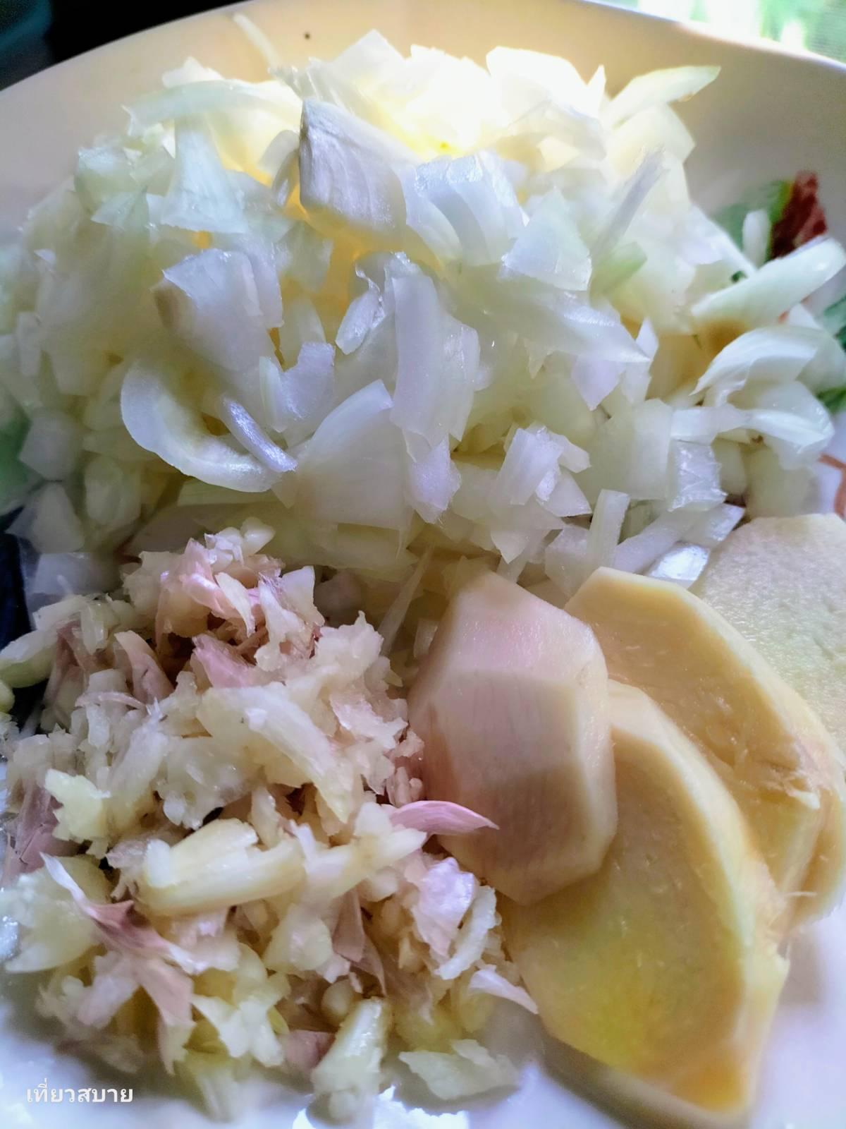 5.ขิงแก่ หั่นแว่น (เพิ่มความหอม)