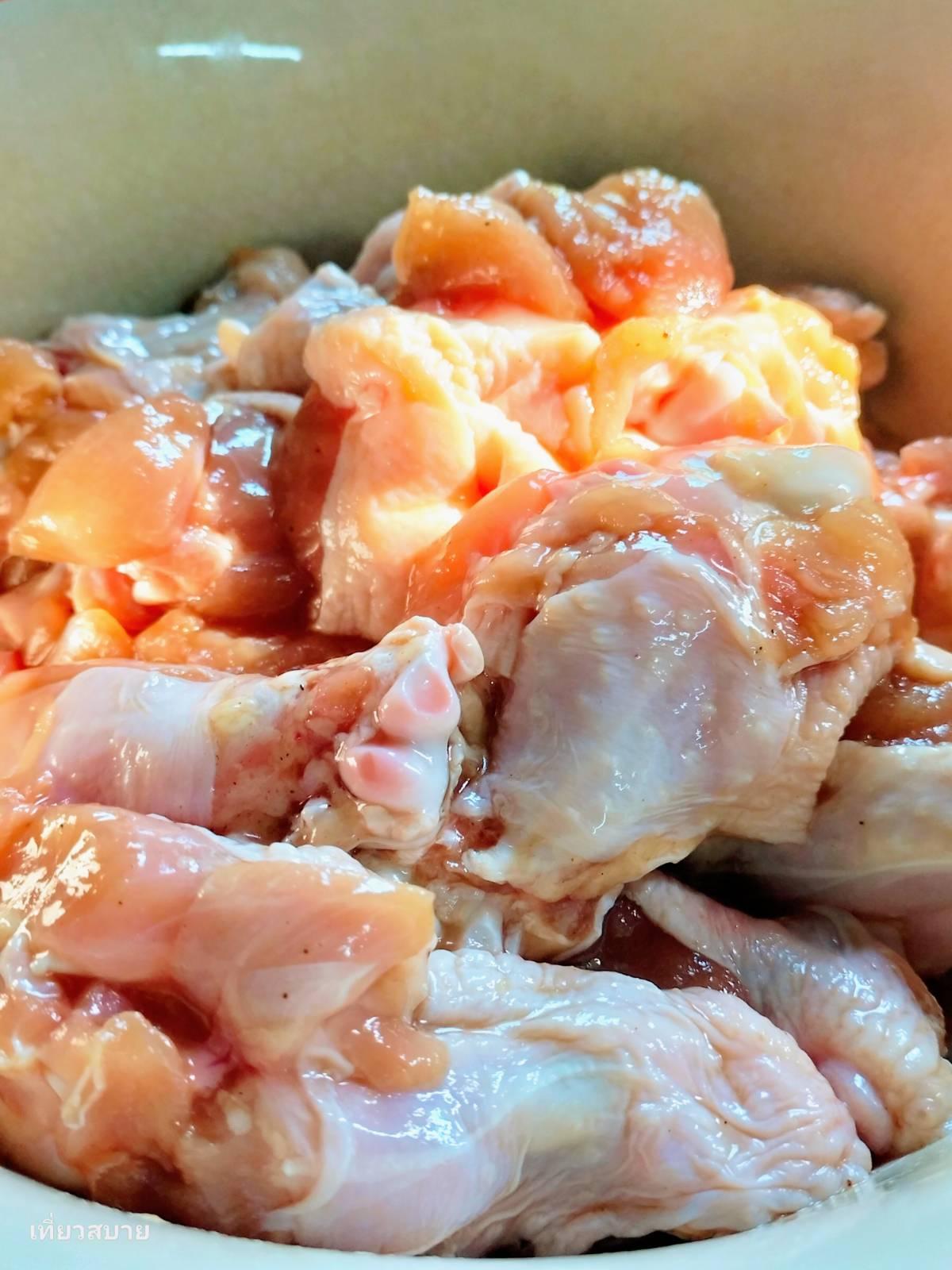 1. ล้างไก่ให้สะอาด ผ่ากลาง