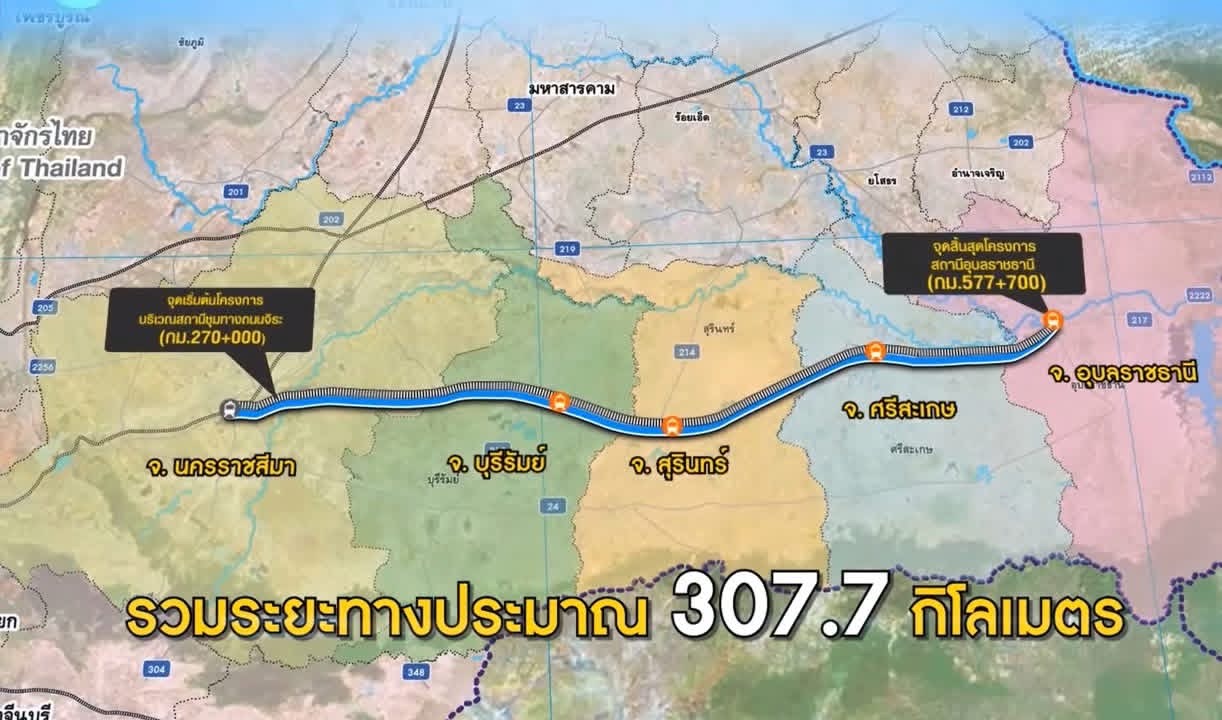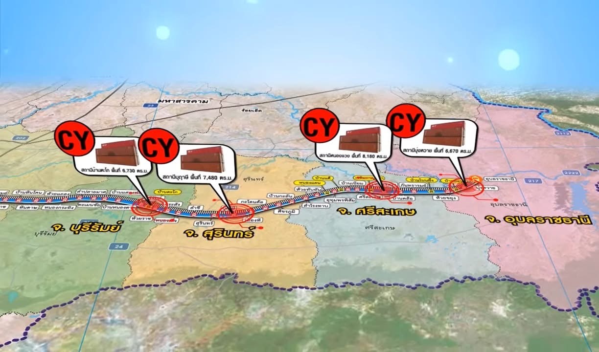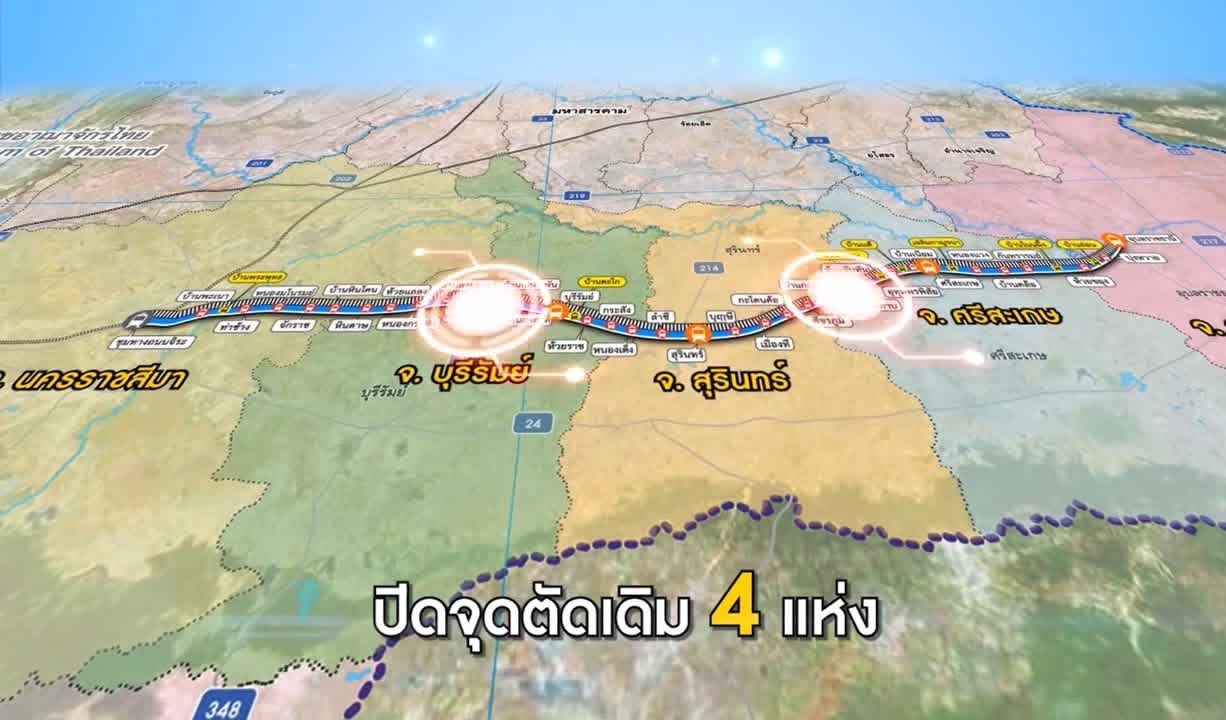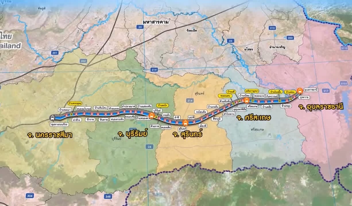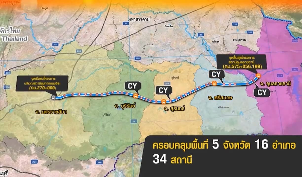 มี 34 สถานี โดยยกระดับ 3 สถานี คือ บุรีรัมย์ สุรินทร์ และศรีสะเกษ