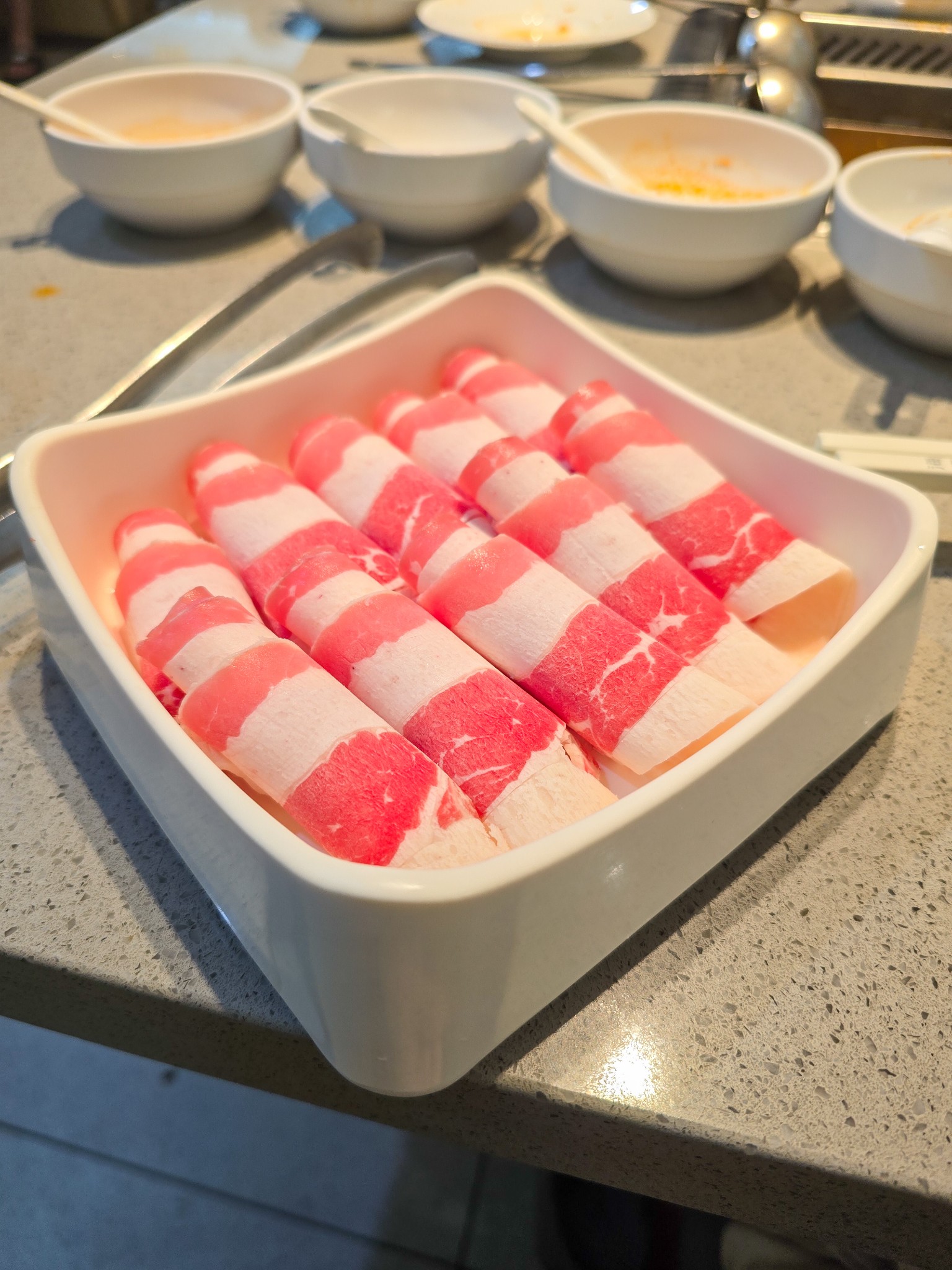 ​แต่พอมาที... มาอย่างกะเขื่อนแตกครับ! เนื้อวัวที่สั่งค้างไว้พุ่งมาทีเดียว 5 ถาดรวด ลายสวยนะแต่ละถาดไม่ซ้ำกันเลย ผมก็สู้สิครับ อิ่มแค่ไหนก็ต้องยัด แต่ความพีคยังไม่จบ แฟนผมที่กินอิ่มไปแล้ว ถึงกับตาค้างเมื่อ เนื้อหมูอีก 5 ถาด ตามมาติดๆ! แฟนบอก "คืนได้มั้ย" แต่ผมมันสายงกครับ เลยต้องรับจบเนื้อหมูแทนแฟนไปอีก 2 ถาด บอกเลยว่านาทีนั้น "จุกจนถึงคอหอย" ของหวานอะไรไม่ต้องพูดถึง กินไม่ลงแล้วครับ 😂
