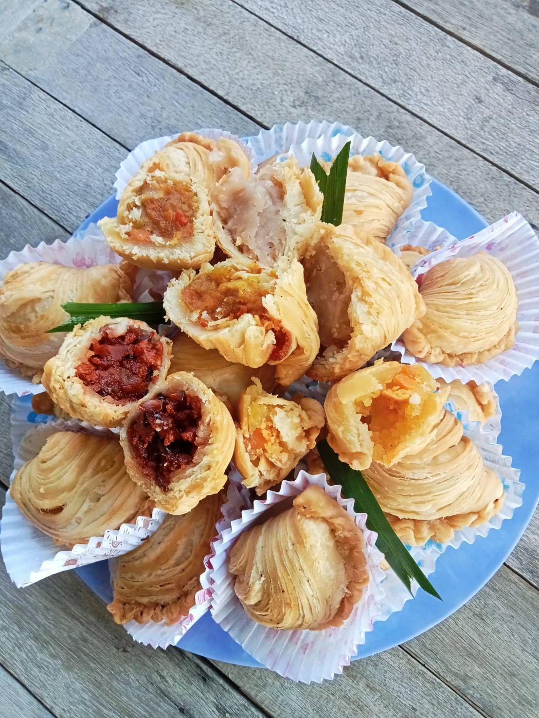 เป็นขนมอบไส้แน่น แป้งกรอบบาง