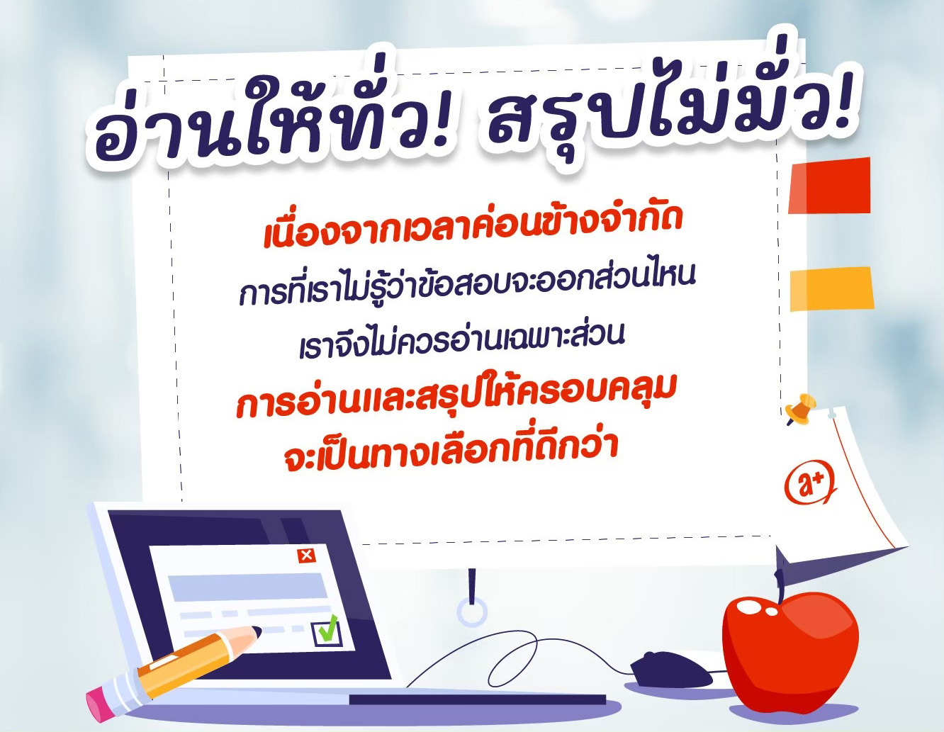 แม้จะเหลือเวลาไม่มาก หากอ่านอย่างถูกวิธี ก็ยังสามารถเพิ่มความมั่นใจและผลลัพธ์ในการสอบได้