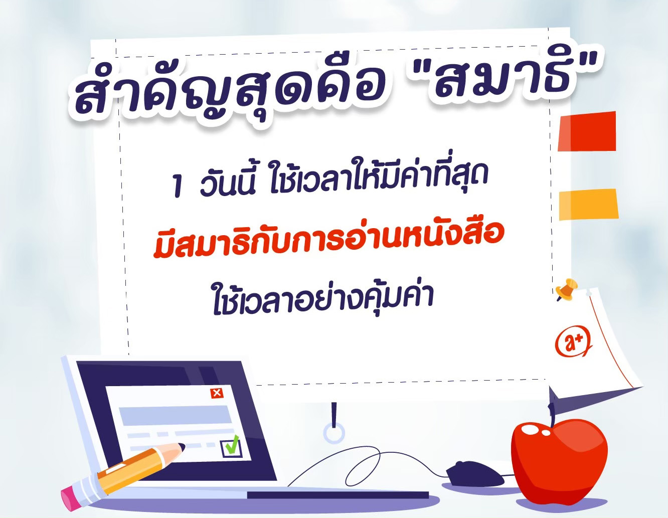 ลดสิ่งรบกวนและตั้งใจอ่านอย่างมีสมาธิ จะดีกว่าการอ่านจำนวนมากแต่ไม่เข้าใจเนื้อหา