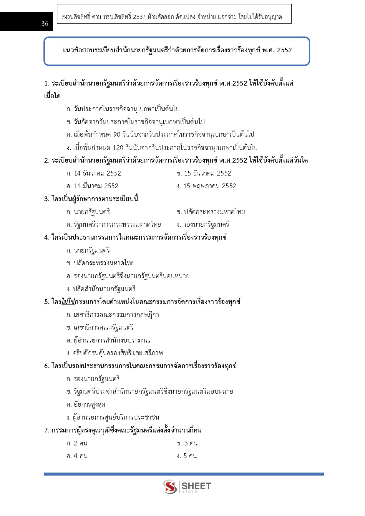 – แนวข้อสอบระเบียบสำนักนายกรัฐมนตรีว่าด้วยการจัดการเรื่องราวร้องทุกข์ พ.ศ. 2552