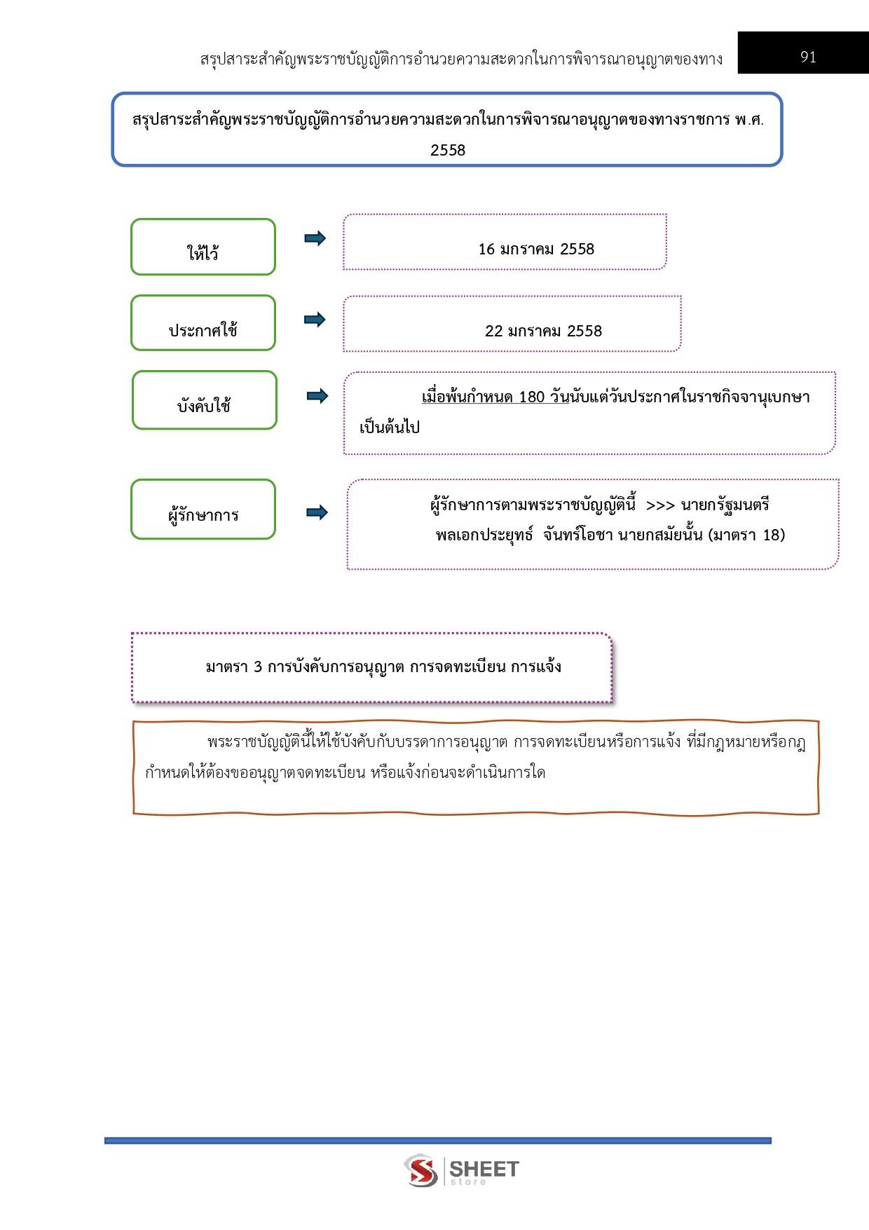 – แนวข้อสอบสรุปสาระสำคัญพระราชบัญญัติการอำนวยความสะดวกในการพิจารณาอนุญาตของทางราชการ พ.ศ. 2558