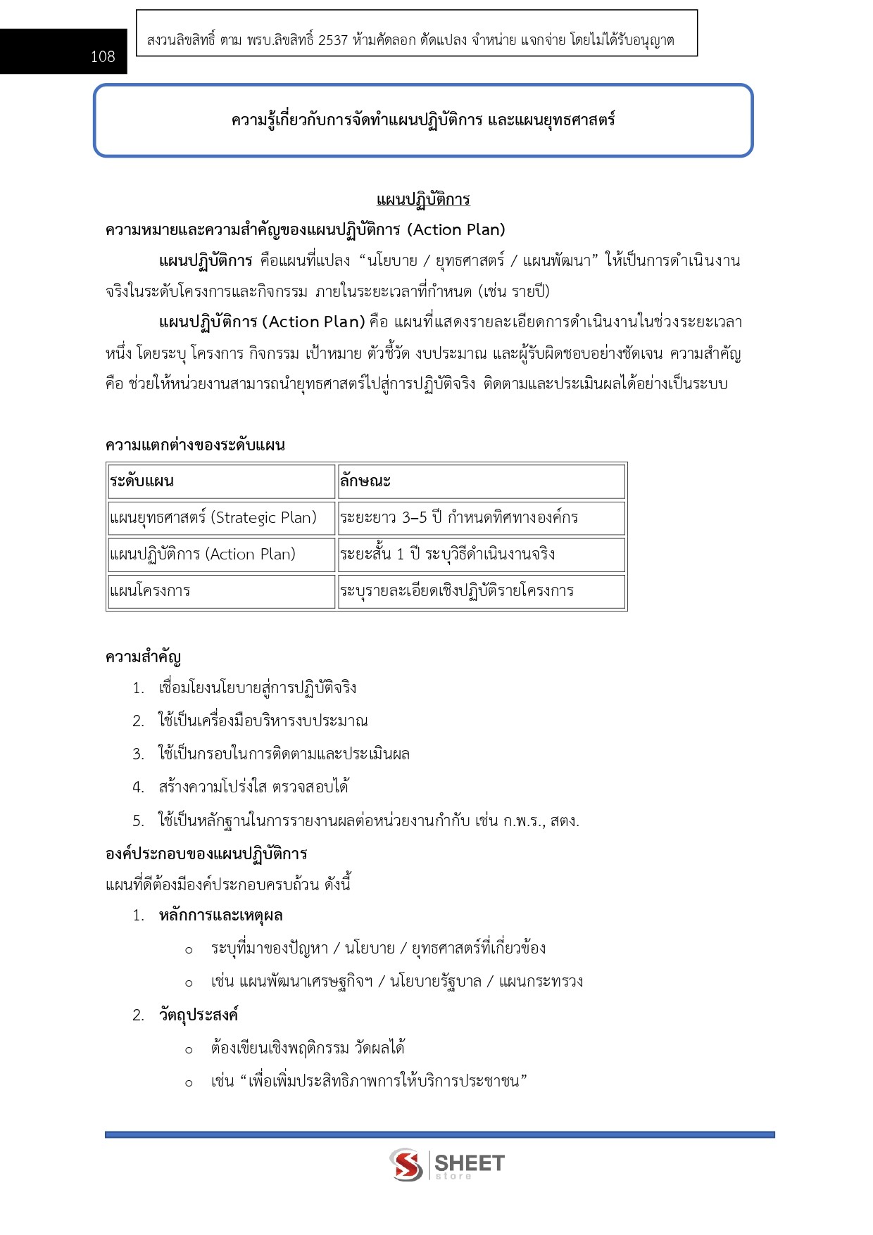 – ความรู้เกี่ยวกับการจัดทำแผนปฏิบัติการ และแผนยุทธศาสตร์