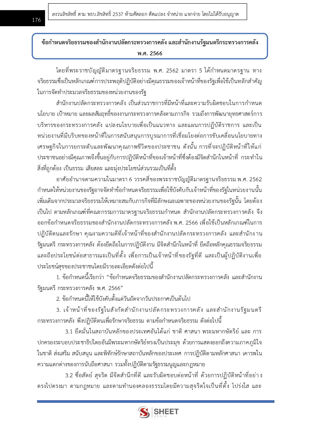 – ข้อกําหนดจริยธรรมของสำนักงานปลัดกระทรวงการคลัง และสำนักงานรัฐมนตรีกระทรวงการคลัง พ.ศ. 2566
