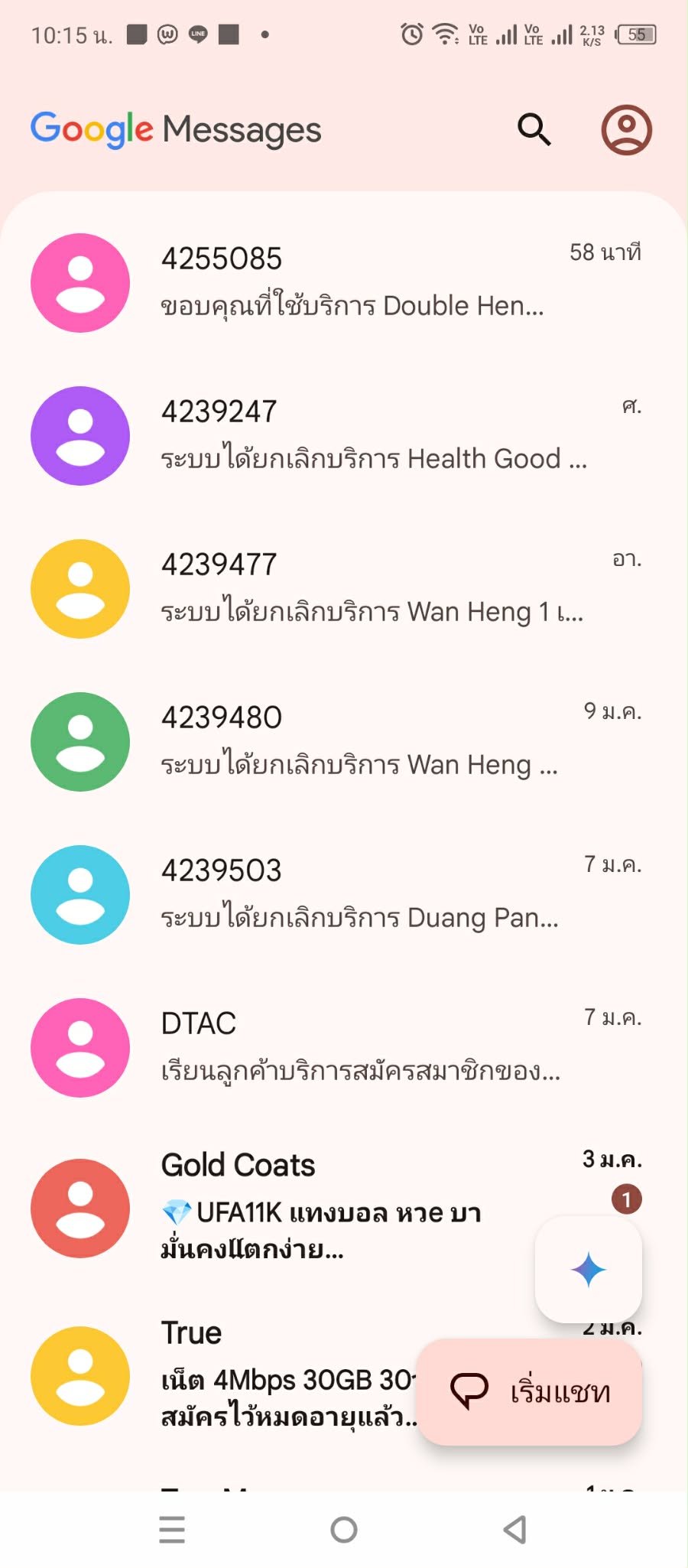 ค่าย สีฟ้า ทุกทีข้อความละ 5 บาท ล่าสุดมาใหม่ ข้อความละ 3 บาท มันมาเพื่อจะเอาเงินตูให้ได้ 3 บาท พวกสแกมเมอร์ มือถือทั้งหลาย ตูต้องคอยโทรไปยกเลิกมันใช่เรื่องไหม สมัครก็ไม่ได้สมัคร พวกสมัครให้ ยัดเยียดให้ตูทั้งนั้น มันเหมือนกันทุกค่าย ชะมะ ก