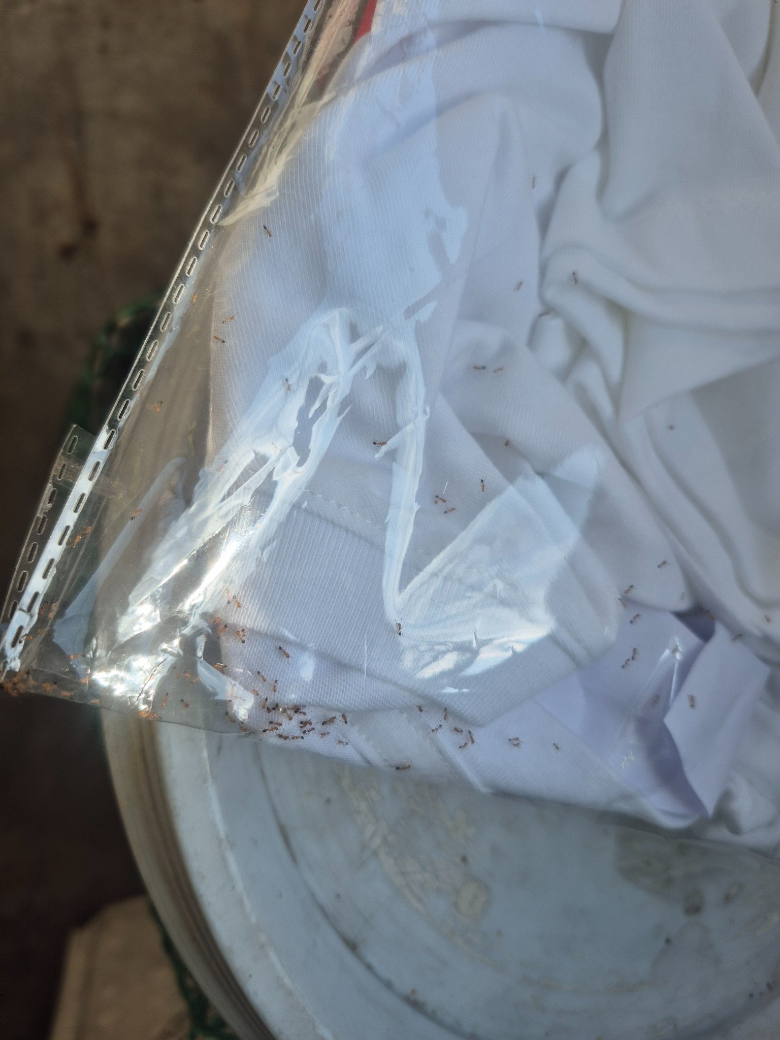 เมื่อวาานมดขึ้น .. เลยไป เคาะๆ. แล้ว ใส่ถุง ย้ายมาวางอีกที่