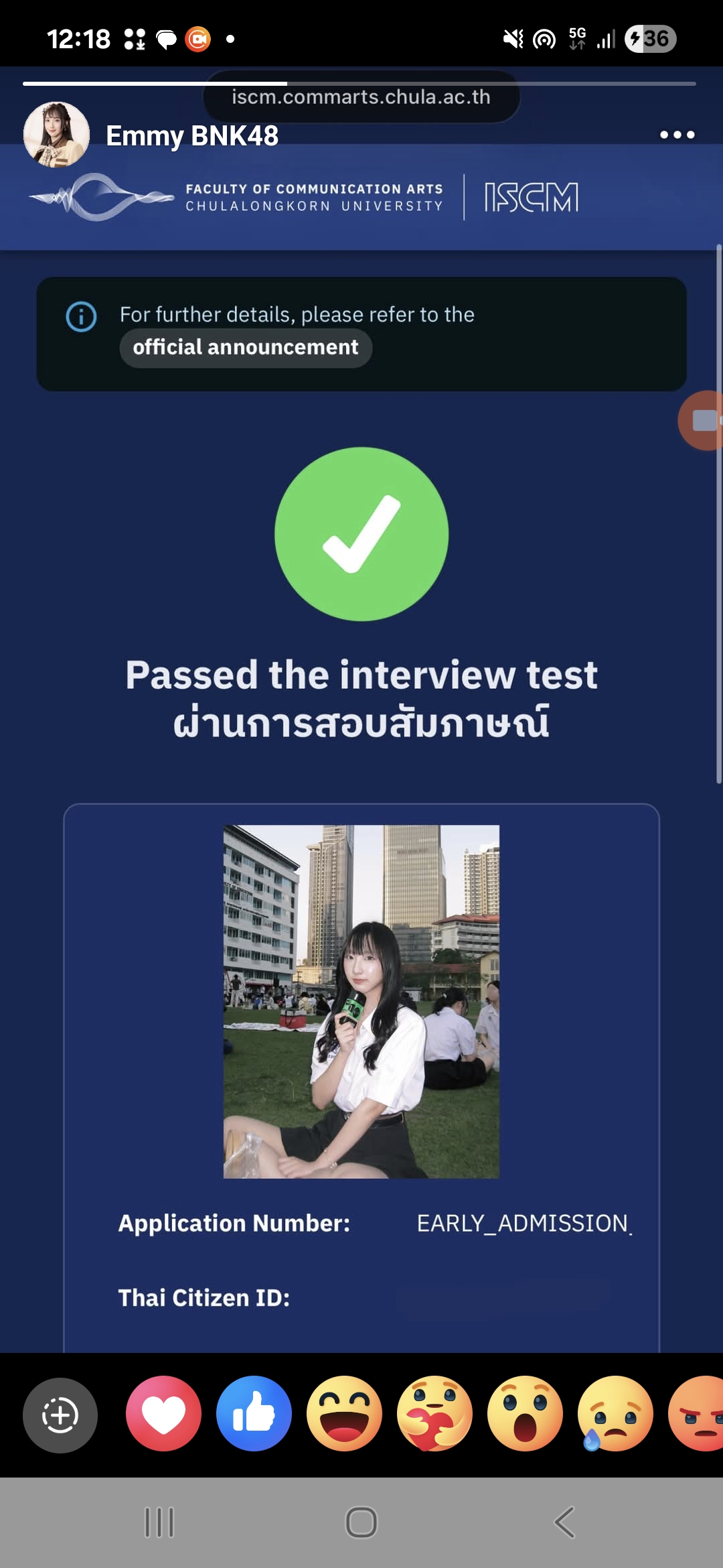 Emmy BNK48. สอบสัมภาษณ์ ผ่านแล้ว จุฬาลงกรณ์.. ส่วนแชมป์ประจำสัปดาห์ จาก jingjing CGM48 และต่อด้วย pancake BNK48