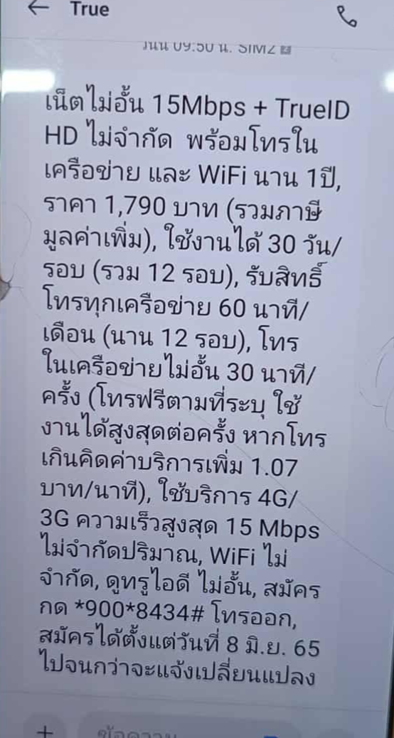 ขอสอบถามครับ คือก่อนหน้าซิมรายปีที่ซื้อมากำลังจะหมดจึงได้โทรไปคุยกับ call center ของทรูเขาเเนะนำโปรเน็ต *900*8434# ซึ่งเป็นเน็ตไม่จำกัดมาให้ เเต่ผ่านมา3วันทถึงวันที่ซิมเน็ตหมด จึงสมัครเเต่ทำไมถึงสมัครไม่ได้ครับ ตอนโทรไปถาม call center เขาเป็นคนเเนะนำมาเองเลย จากนั้นเขาก็ส่งข้อความนี้มาให้ ทีนี้เติมเงินรอไว้ในมือถือเเล้ว 1800 บาท พอกดสมัครกับสมัครไม่ได้ เเล้วจะรับผิดชอบยังไงกับเงินที่เติมใส่มือถือรอไว้เเล้ว 1800 บาท?
