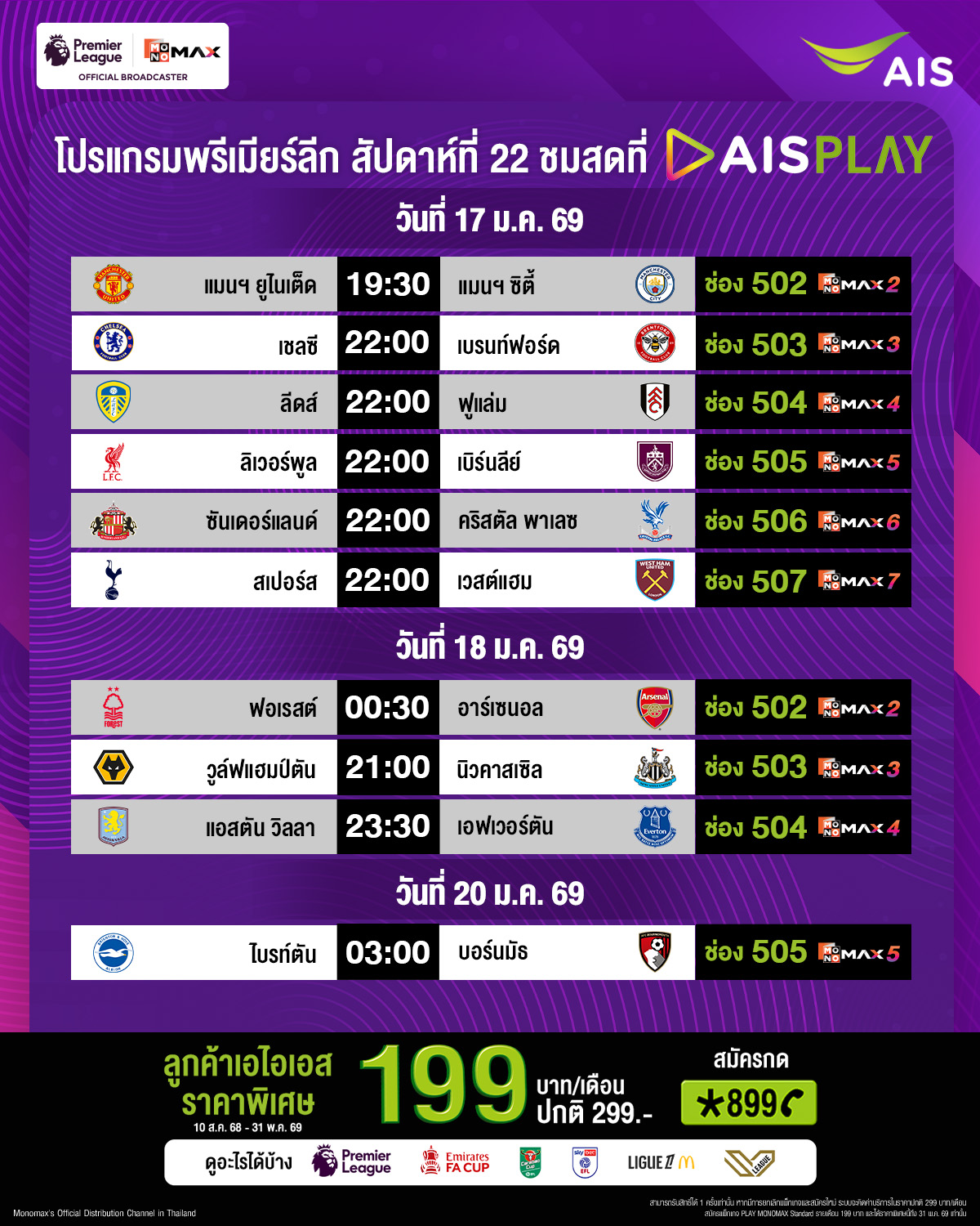 (สำหรับ AIS PLAY หมายเลขช่องตามนี้)