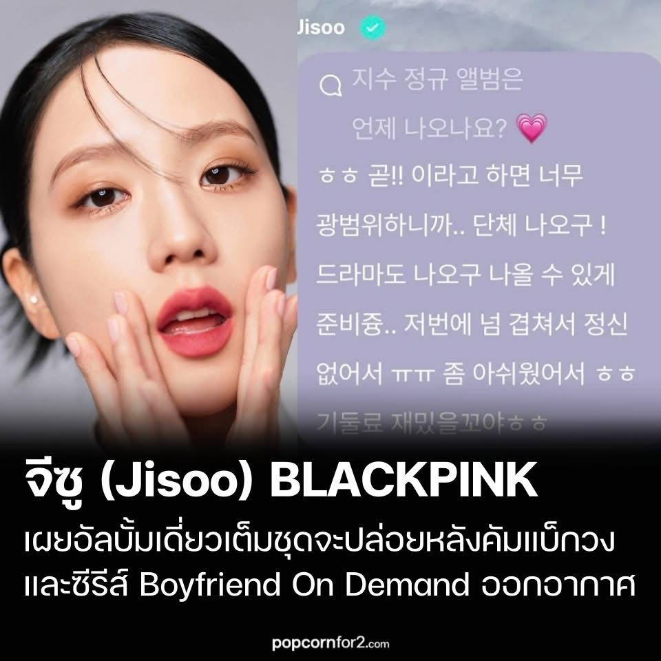จีซู (Jisoo) BLACKPINK เผยอัลบั้มเดี่ยวเต็มชุดจะปล่อยหลังคัมแบ็กวง และซีรีส์ Boyfriend On Demand ออกอากาศ
